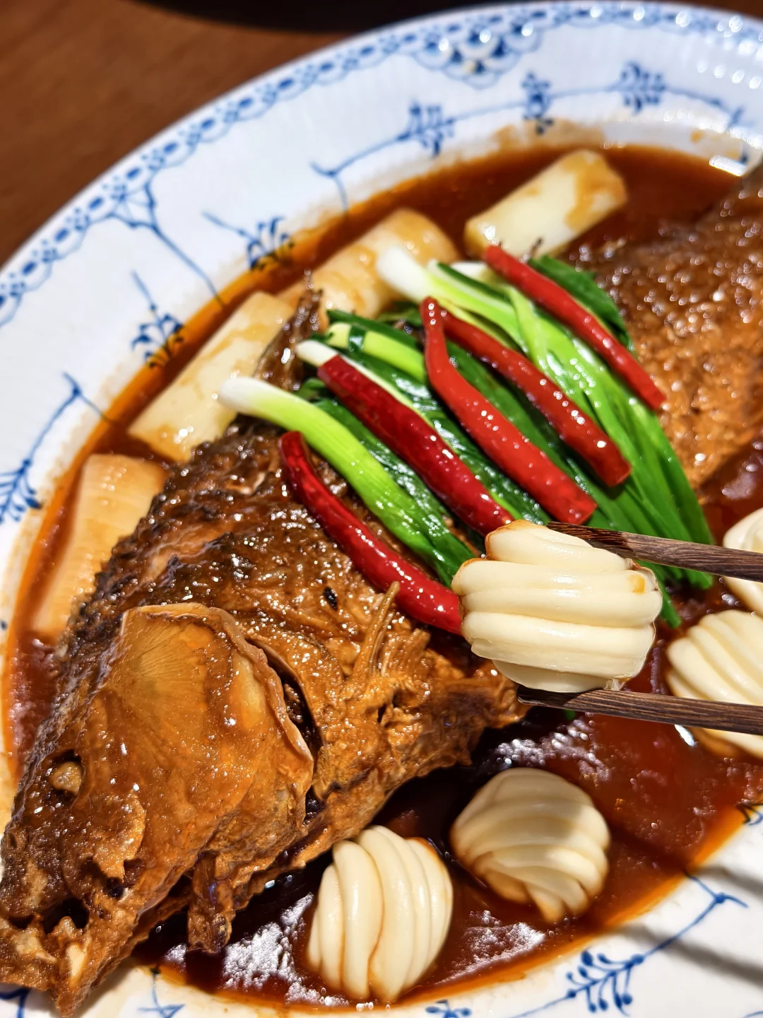 一边吃非遗晋菜一边俯瞰钟楼街夜景🌃 🔥 传承古法酱香大鲤鱼 一上桌就镇住了❗️鲤鱼是山西宴席的“头道菜”,他家用的还是非遗老师傅的古法酱烧手艺。鱼肉裹满浓稠酱汁,入口先是酱香,后是鲜甜,肉质紧实不散,连鱼骨都炖到酥软!不愧是晋菜大师坐镇的招牌! 🌶️ 黄椒酱莜面 莜面是山西人的乡愁主食,配上自制黄椒酱,香而不呛,酸辣开胃。莜面卷筋道,而且裹满酱汁,吃一口就停不下来~妥妥的“碳水脑袋快乐老家”❗️❗️❗️