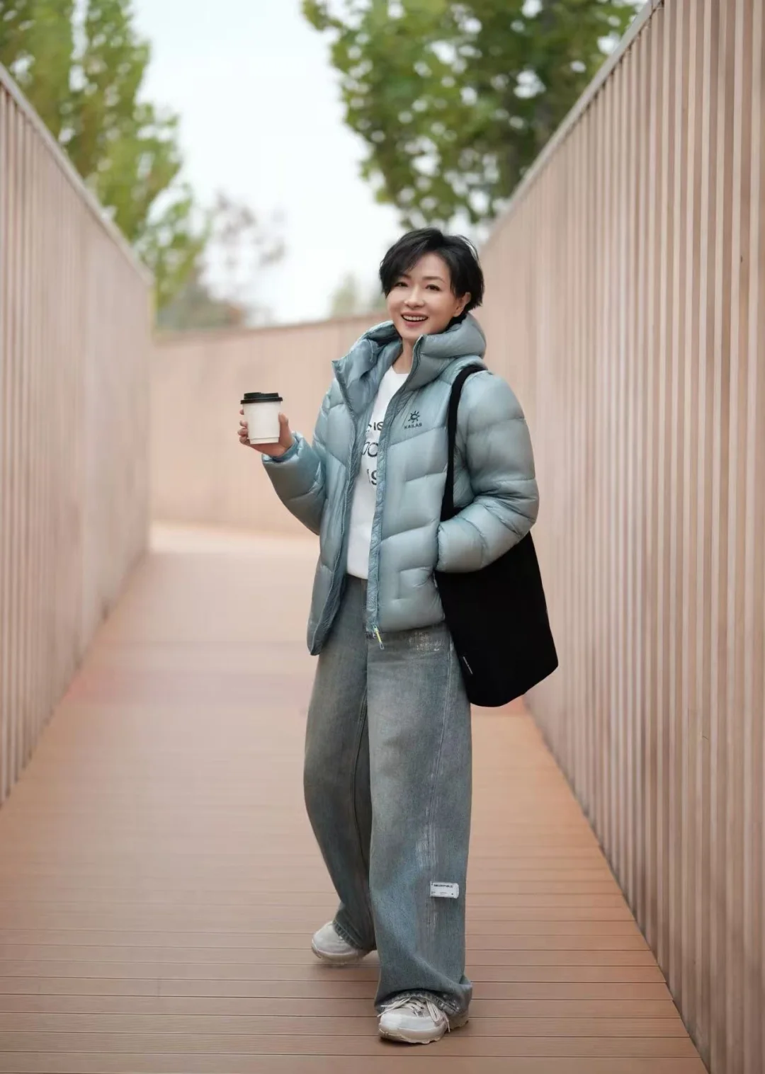 万茜的冬日松弛感穿搭,蓝调羽绒yyds!