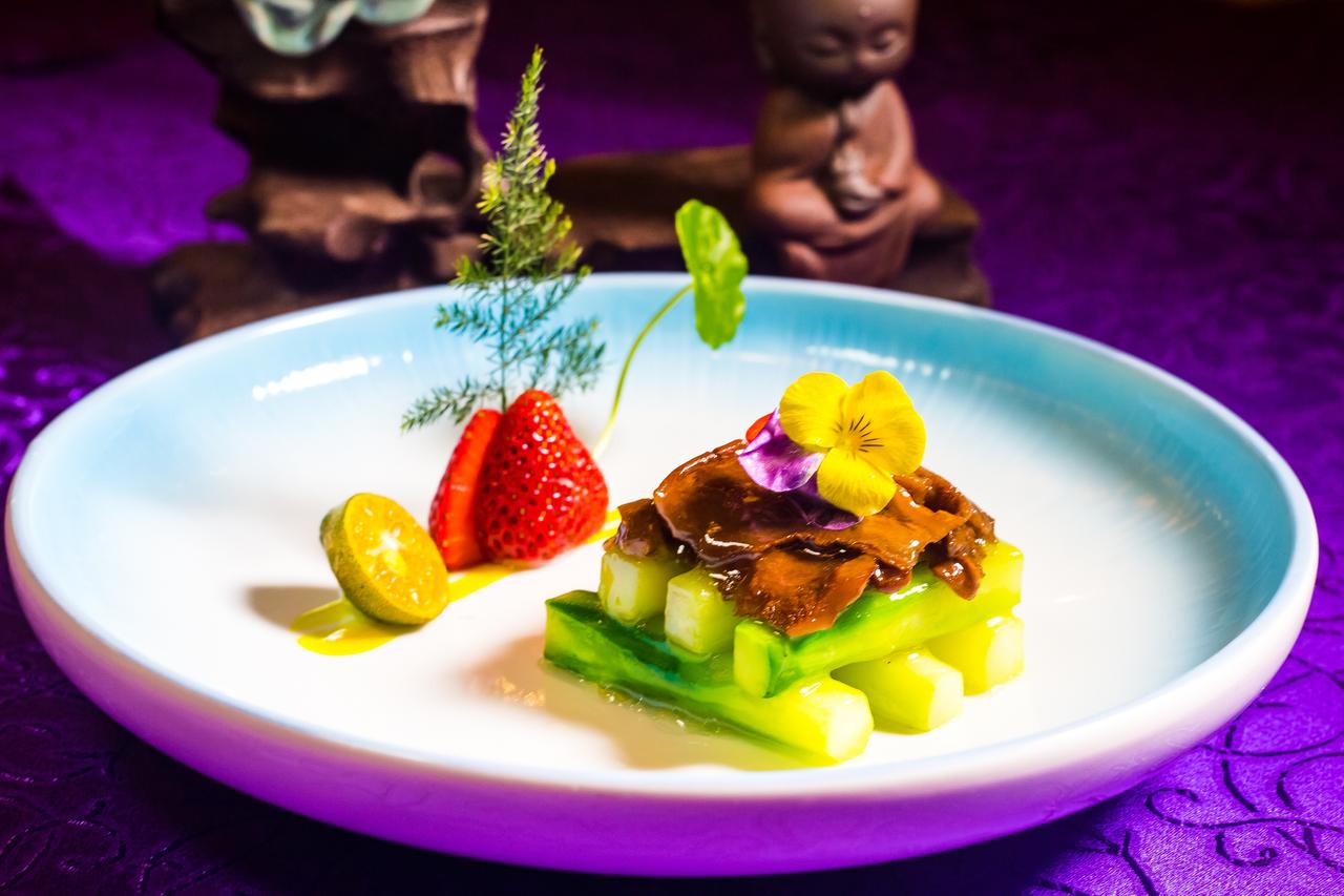 素食舌尖上的中国 三亚的浪漫,不止碧海银沙的热烈,更有南山深处的禅意悠长。瞻仰和感受过108米海上观音的庄严,循着鸟语花香的绿境走进百年酸豆古树掩映中的缘起楼,才懂何为“人间有味是清欢”。 缘起楼的素香,藏着二十余年的文化沉淀与匠人初心。自1998年营业以来,这里便以“集寺庙素斋之精华,融宫廷与民间素斋之风骨”为初心,厨师团队远赴多地名寺学艺,将海南本土野菜、菌菇融入菜式,终成独树一帜的南山素斋文化。那些获奖无数的珍馐背后,是匠人对“粗料细做、素料荤做”的极致追求,更是对佛教慈悲护生理念的践行。如今流转的全息光影里,不仅有福寿文化的意蕴,更藏着中华素斋千年的传承——从魏晋素食之风到梁武帝倡素之举,从佛门戒杀护生到民间食素归真,素食早已超越饮食本身,成为一种敬畏生命、回归自然的生活哲学
