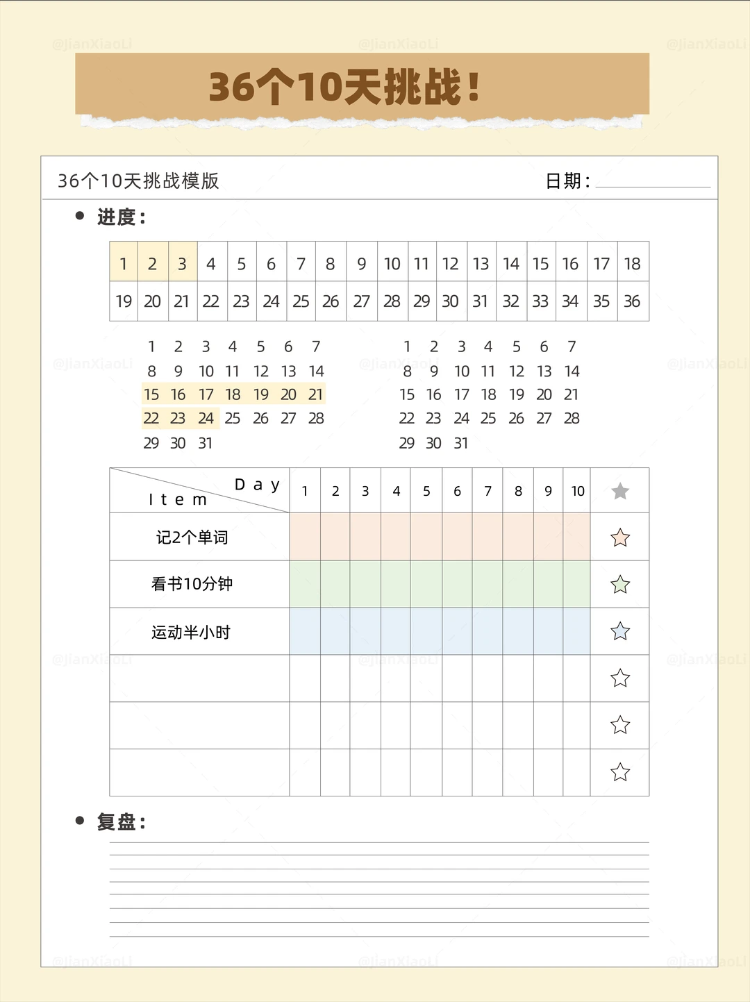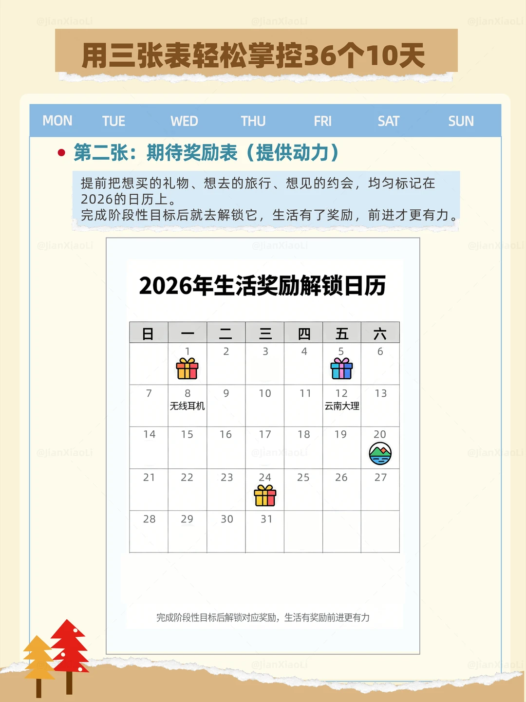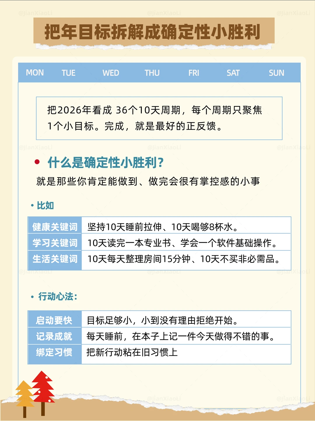 年度目标写得又大又空? 年底复盘时只剩迷茫和焦虑? 【36个10天】掌控法✨ ✅ 用1个关键词锁定全年方向 ✅ 三张表轻松跟进进度+动力+复盘 ✅ 把年目标拆成36个确定性小胜利 ✅ 八个维度具体到可直接执行 2026不想再浑浑噩噩? 把这份可复制的系统放进你的收藏夹📋 慢慢填满,静静成长🍃