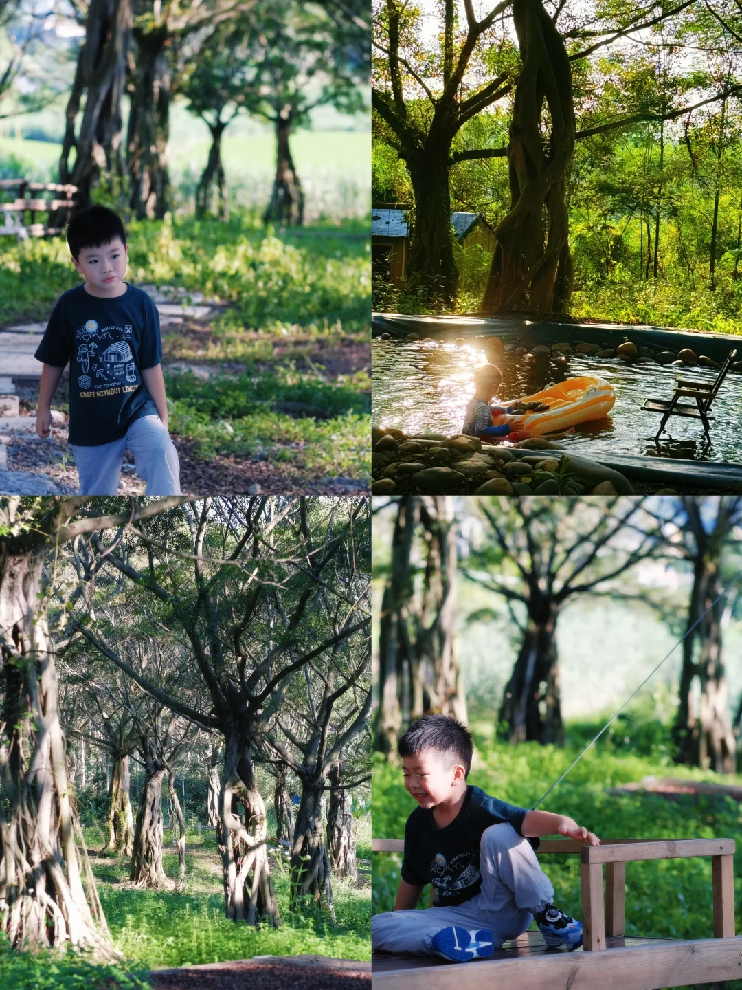 🌟遛娃亮点:沉浸式森林遛娃,随便一拍都是森系大片🌲能捞鱼玩水、藏宝游戏等等活动体验!还有配套的露营设备和自助烤肉🍖晚上看星星、听虫鸣,真的很舒服惬意!