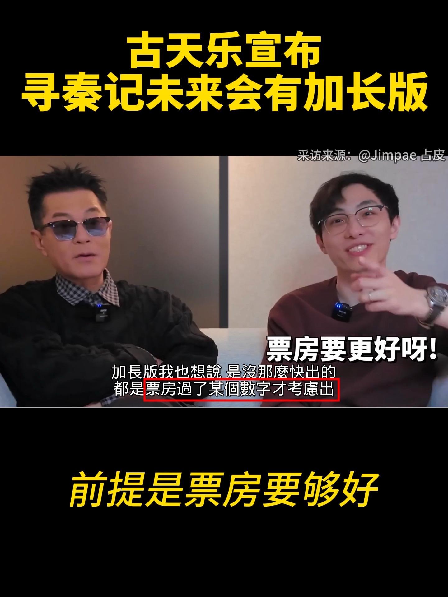 古天乐宣布寻秦记会有加长版。古老板近期接受采访有提到,在考虑出寻秦记的加长版,但是前提是票房数字要够好才可以出。如果有加长版会在香港院线线上,内地肯定也会参考《破地狱》在线上放映。大家多刷几次寻秦记就有机会看到寻秦记的加长版了。