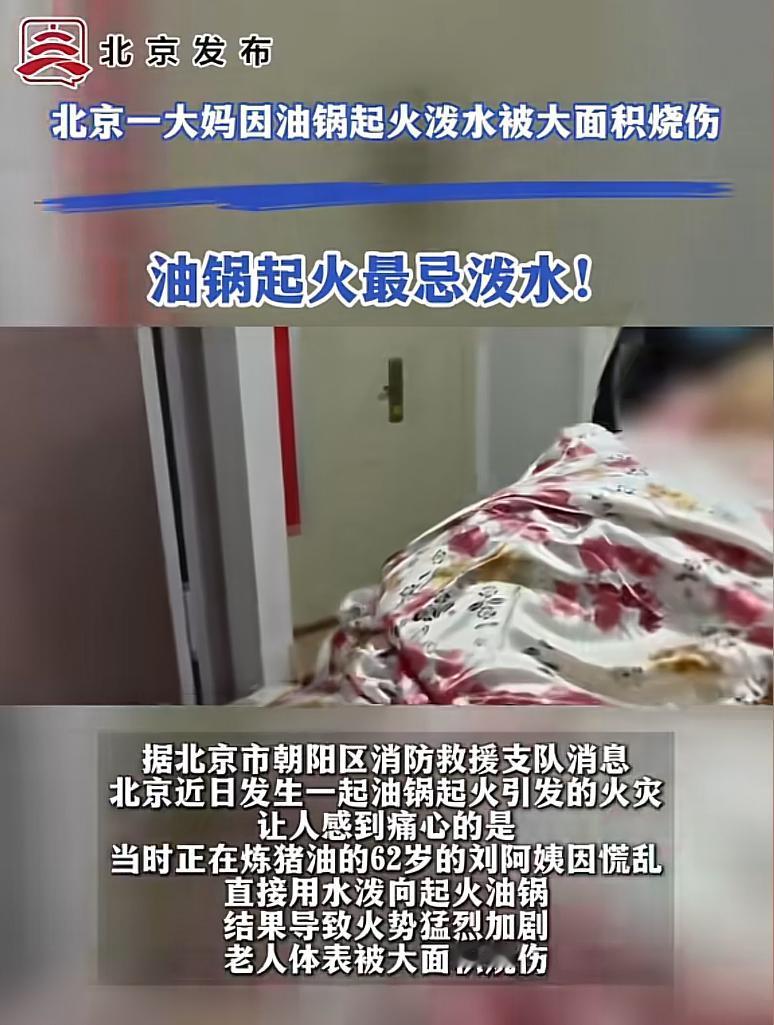 “悲剧还是发生了!”1月12日,北京,一阿姨在厨房炼猪油,没想到油温太高,锅里面直接窜出了火苗,情急之下,阿姨直接用水泼向起火油锅,结果导致火势猛烈加剧,阿姨瞬间被火焰包裹,全身都被严重烧伤!网友:就不该这么做! 生活其实是一场如果不时刻盯着风控,随时可能爆仓的赌局。大多数时候,我们只盯着菜篮子里省下的那几块钱,以为这是精明持家,是正向收益。却很少有人意识到,厨房里的每一次点火,本质上都是在进行一场高风险的能源交易。一旦操作失误,原本以为的微薄利润,瞬间就会变成还得起或还不起的巨额负债。 2026年1月8日,这笔惨痛的坏账,被强制记在了北京朝阳区来广营乡一户人家的头上。这天上午,62岁的刘阿姨正在操盘她的小型“炼化项目”熬猪油。在老一辈的价值投资理念里,自己动手熬油,成本低、油水足,是绝对的优质资产。 但这笔交易极其依赖对“热能杠杆”的把控,稍有不慎,就会引发连锁崩盘。当油温悄无声息地突破安全阈值,原本平静的锅底突然蹿出了火苗。这就是灾难发出的第一次追加保证金通知。面对突如其来的红盘预警,刘阿姨不仅没有止损,反而由于恐慌,因错误判断追加了一笔致命的注资。 她顺手抄起一碗冷水,直接泼向了正在燃烧的油锅。在她的认知账户里,水克火是天经地义的常识,是解决问题的万能流动性。但在高温油火这个特殊的金融衍生品市场里,水根本不是灭火剂,而是足以炸毁一切的烈性炸药。这一操作违背了基础物理定律,瞬间引发了毁灭性的资产清算。 常温的水一头扎进几百度的热油里,根本来不及融合,直接在底部气化。这就像是在一个密闭的高压仓里引爆了一颗手雷,体积瞬间膨胀千倍。原本局限在锅里的小火苗,被这股巨大的推力裹挟着,瞬间变成了一朵巨大的火焰蘑菇云。 这已经不是单纯的燃烧,而是一场不折不扣的物理爆炸。刘阿姨瞬间被这条狂暴的火龙吞噬,甚至连撤退的机会都没有。这场试图省钱的家务劳动,最终演变成了一场倾家荡产的悲剧。 正在卧室休息的儿子听到厨房传来一声巨响,那不仅仅是油锅炸裂的声音,更是家庭命运破碎的声响。他冲进现场时,母亲已经被火焰完全包裹,那是任何子女都不敢直视的画面。尽管后续消防力量迅速介入,将刘阿姨从死神手里抢了回来,但损失已经不可逆转。 医院的诊断结果,就像一张惨不忍睹的资产负债表。全身绝大部分皮肤都在这场爆炸中被摧毁,深二度到三度的烧伤意味着人体的核心防御资产彻底清零。这不仅仅是肉体上的痛苦,后续漫长的植皮、抗感染治疗,每一项都是天文数字般的开支。 为了省下买油的那点小钱,最后却要支付几百倍甚至上千倍的医疗溢价,这笔账算得让人心头滴血。我们在复盘这起惨烈的“穿仓”事故时,必须重新审视厨房里的那些隐形杀手。为什么大家都知道水火不容,却总有人在关键时刻犯错? 因为恐慌会击穿理智的底线,让人回归本能,而本能往往是错的。除了水,很多人手边有什么扔什么,比如蔬菜。这同样是在赌博。如果蔬菜含水量高,扔进去的效果和泼水无异,无非是把爆炸的当量稍微降低了一点点。 还有人迷信猫砂,觉得这东西吸水就能吸油。这得看你手里拿的是什么“筹码”。如果是矿物猫砂,确实能像沙土一样隔绝空气,起到冷却止损的作用,属于安全资产。 但如果是植物猫砂,里面全是淀粉和有机物,遇火即燃,扔进去等于是在给火势加杠杆。那么,在这场生死的博弈中,到底什么才是真正的“硬通货”?第一张底牌是锅盖。这是最简单、最粗暴的熔断机制。 盖上锅盖,彻底切断氧气供应,让火势窒息,这是物理层面的强制平仓。但切记要等锅体彻底冷却再揭开,否则氧气回流,火势立马死灰复燃。第二张底牌,让人意想不到,竟然是“油”本身。 用冷油去灭热油,听起来像是抱薪救火,实则是利用热平衡原理进行风险对冲。沿着锅边缓缓倒入大量常温食用油,通过扩大基数来稀释整体的热能密度。只要油温被拉低到燃点以下,这场危机自然解除。 这一切的前提是,你得先切断源头关闭燃气阀门。回顾刘阿姨的遭遇,我们看到的不是一个孤立的意外,而是缺乏风险常识所带来的必然惩罚。生活从不因为你是出于节俭的初衷,就对你的错误操作网开一面。 在厨房这个高危作业区,每一次侥幸心理,都是在给未来埋雷。当油锅起火的黑天鹅事件真的发生时,请锁死你的双手,千万别去端水。哪怕什么都不做,先逃离现场,都比错误的操作要划算得多。 毕竟,在这个残酷的账本上,钱没了可以再赚,皮肉和生命一旦透支,就再也没有翻盘的机会。 希望这起发生在2026年年初的惨剧,能成为所有人脑子里的一道风控红线。别让一时的慌乱,烧毁了整个家庭的未来。