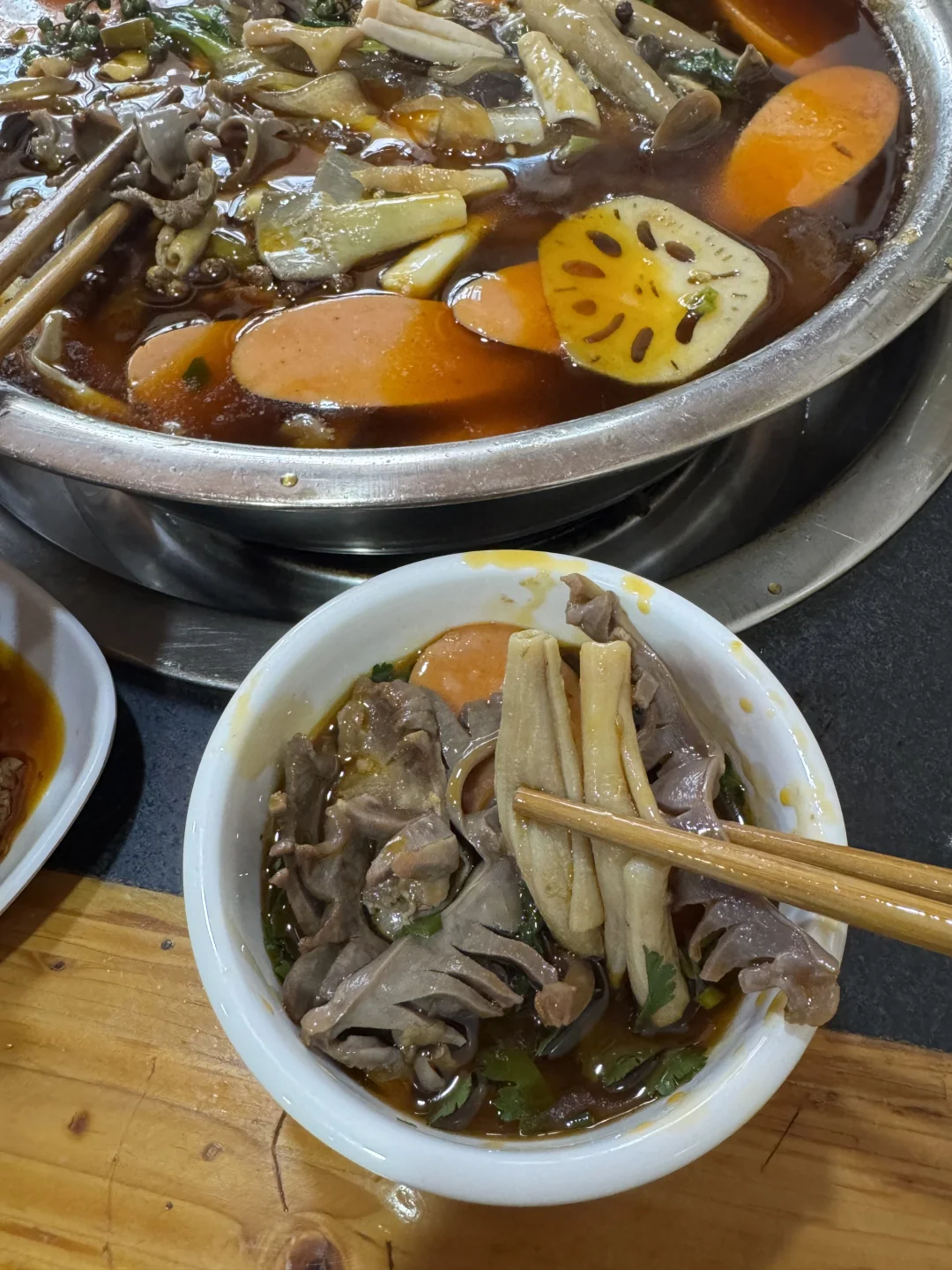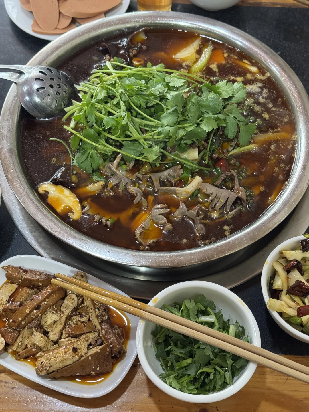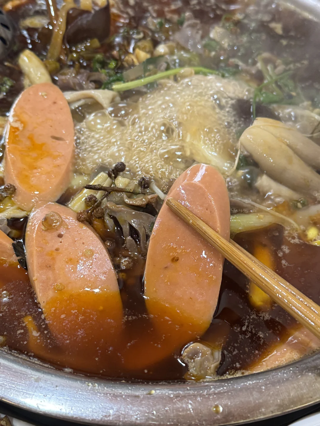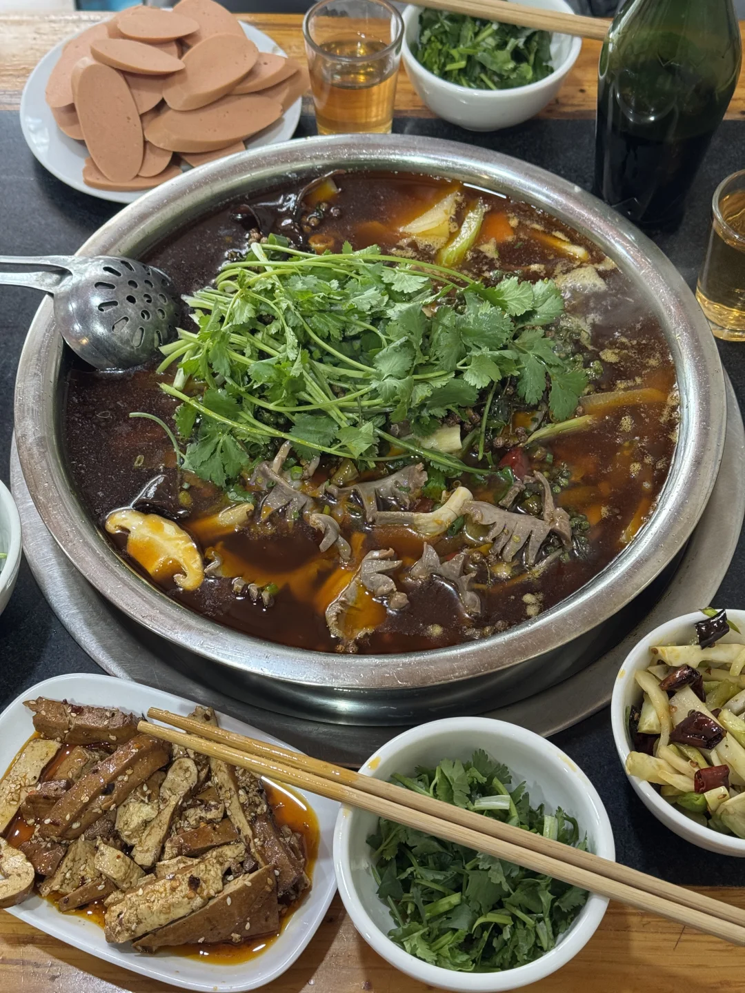 谁懂这一口的好吃程度啊 渝北这家真的很便宜,4个人吃下来,人均30多!!!鸡杂很多,还加了火腿肠,配菜种类很丰富。