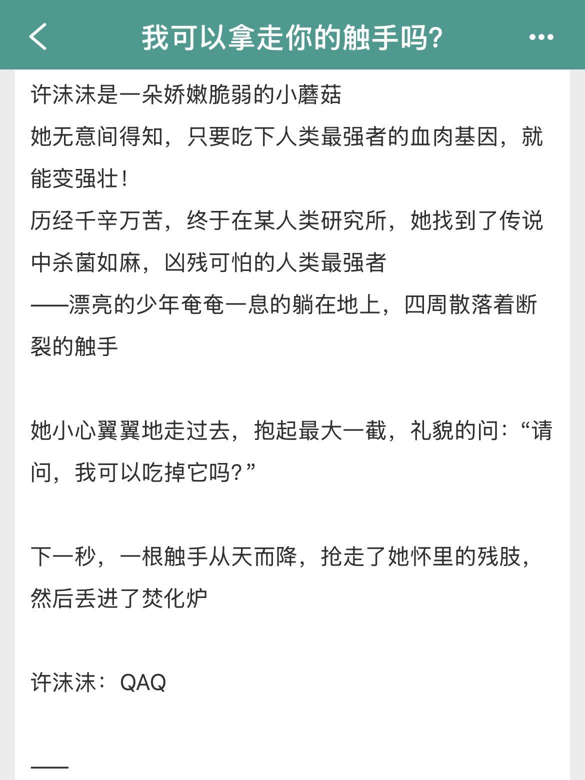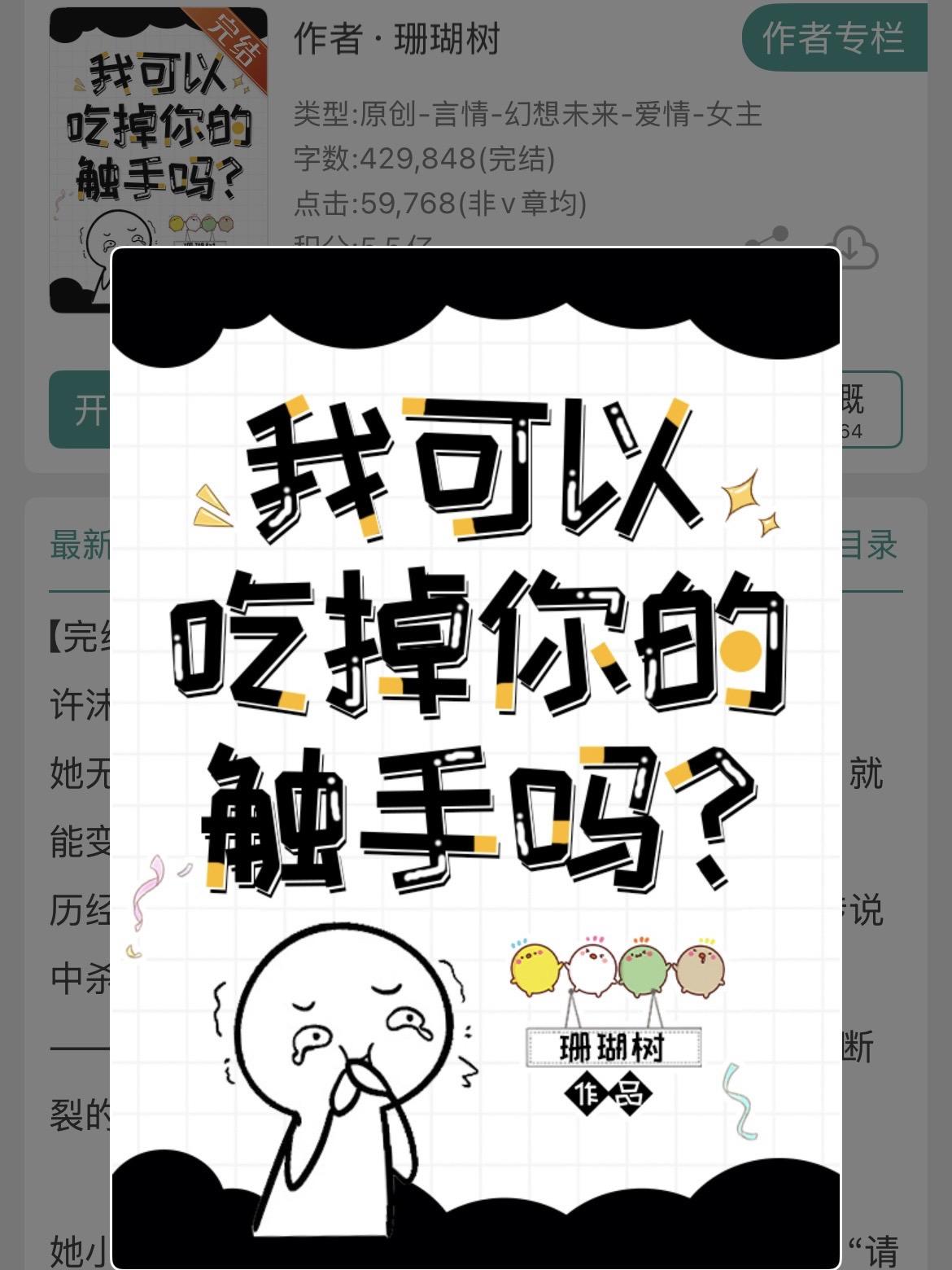 设定香香+世界观宏大+全球进化+克苏鲁…设定香香+世界观宏大+全球进化+克苏鲁+赛博朋克背景 ※小学鸡谈恋爱型甜文。 ※全球进化+克苏鲁+赛博朋克背景。 书名:《我可以拿走你的触手吗?》 作者:珊瑚树 标签:末世文、甜文、轻松文、科幻文、完结文