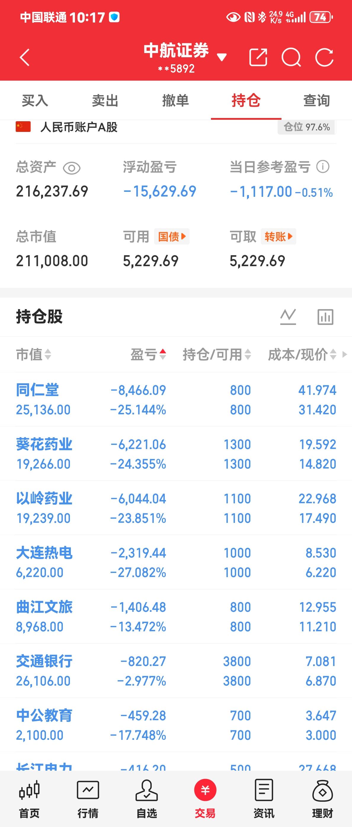 医院股是不是已经穷途末路了? 看着手机里的医院股欲哭无泪, 忍痛割肉又心疼, 拿着不放,越拿赔的越多, 同仁堂由挣四千到现在赔八千多, 我是真无语, 哪个大神支支招, 是果断止损还是继续持有? 看着每天的蓝数, 心慌意乱。 辛辛苦苦一年, 不仅颗粒无收, 还负债累累, 心血来潮炒股的代价。