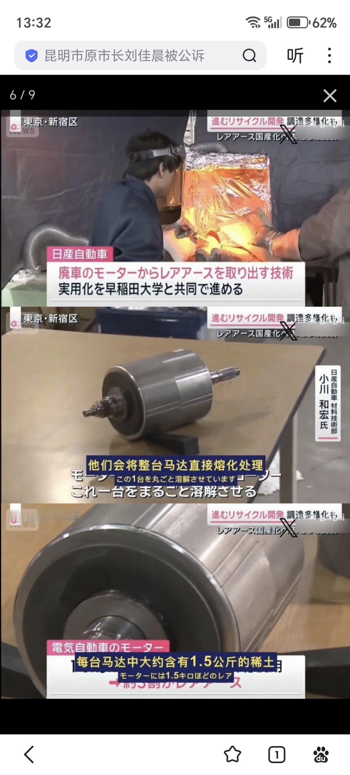 为了摆脱中国禁令,日本开始拆马达提炼稀土! 中方宣布禁止军民两用物项对日出口后,日本产业陷入“断供恐慌”。 因为日本70%以上稀土依赖中国进口,尤其电动汽车、军工领域必需的镝、铽等重稀土对华依存度,更是接近100%。 如果断供持续三个月,日本经济损失将高达6600亿日元(约合42亿美元)。 面对这一危机,日本经济安全保障大臣小野田纪美表示,日本正在开发稀土技术、无稀土的磁体以及低稀土含量的耐热超合金的开发。 然而,实验室的技术突破与大规模量产之间,隔着一条难以逾越的鸿沟。 为了解决“无米下锅”的窘境,日本将目光从陆地投向了深海。 好消息是,日本在南鸟岛周边6000米深的海域,发现了约1600万吨稀土泥,可满足数百年需求。 坏消息是,这么深的开采,不是想采就能采的,技术要求特别高。 南鸟岛位于东京东南约1900公里处,是日本专属经济区的一部分。 2013年,日本海洋研究开发机构和东京大学教授加藤泰浩领导的研究团队,首次宣布这一发现。 这些稀土泥富含高浓度稀土元素,源于海底热液喷口长期积累的矿物沉积,形成了一种独特的“海底宝藏”。 据日媒披露,面对技术壁垒,日本与美国达成协议,美方提供NASA深海机器人技术和5亿美元低息贷款,以加速这一项目。 但有分析者认为,即便成功开采上来,成本将是中国陆地矿成本的5倍以上,在短期内难以实现自给自足。 既然海底的“远水”解不了“近渴”,日本人便拿出了他们的传统艺能,循环利用和资源回收。 日媒报道,日产汽车和早稻田大学,研究出一项新技术。 他们声称能从报废的电动车马达里,能回收98%的稀土,每台马达中大约含有1.5公斤稀土。 怎么做到的? 一个字,熔。 不用再费力拆解马达了。 把整个转子,扔进高温熔炉,加点特殊物质,直接融化分离。 测试显示,整个过程高效且环保,回收的稀土纯度高,可直接用于新磁体制造。 拆马达提炼稀土,用稀土造马达,然后再拆马达提炼稀土。 这样反复循环,可无限累计稀土产量。 完美诠释了日本的“工匠精神”,让人不得不服。 小日子这下子真成稀土提纯表演艺术家了,跑步进入了“拾荒时代”。 想想也对,小日子本来资源匮乏,垃圾分类不就是为了最大化回收资源么? 现在,拆马达提炼稀土,也就是他们的老本行而已,不必大惊小怪。 都是为了生活,拣点破烂不丢人。 以后,日本老百姓的垃圾分类要增加了一种:含稀土电器回收。 废品收购站老板们做梦都没想到,有一天自己也成了战略资源供货商! 但这里面有个问题。 这项技术要到2030年左右才能实用化。 因为要等足够多的电动车报废,才符合经济效益。 然而,目前日本电动车普及率仅约2.8%-6%,远低于全球平均水平(15%)。 日本EV市场以乘用车为主,预计到2030年EV销量占比将升至18.2%,但当前仅售出约2.7万辆BEV(纯电动车)。 那么,从现在到2030年,这期间的巨大缺口怎么办? 日本的精密制造和军工产业靠什么续命? 一个回收技术,能从根本上改变这个格局吗? 更重要的是,一个新能源普及率不过2.8%的国家,又能挤出多少东西? 看得出来,这次的中方禁令就是打了日本的七寸 ,把他们卡得死死的。 他们嘴上说不怕不怕,行动上近乎疯狂。 从深海探险到捡破烂回收,全方位自救。 以前靠进口还能凑合,现在被断了供应,只能绞尽脑汁搞些“歪门邪道”。 深海挖宝成本太高,捡破烂又产量有限,最后大概率还是得低头求咱们松口。