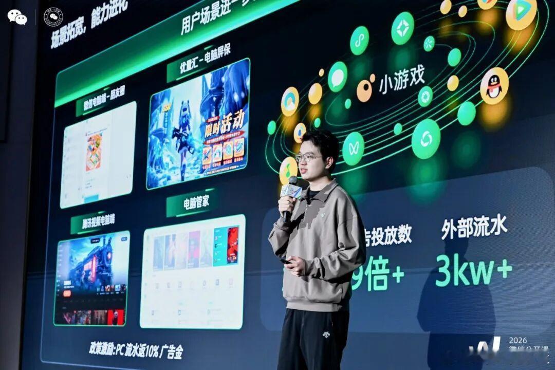 【微信黄铭兴:掘金PC小游戏!玩家时长多100%、ARPU高120%网页链接】1月15日下午,在广州举行的一年一度的微信公开课Pro小游戏专场大会上,微信公开课讲师黄铭兴做了题为“PC小游戏新机遇”的主题演讲。分享中,他提到了过去三年来PC小游戏的高速增长,用户画像,品类特点以及微信小游戏平台推出的各种技术支持和政策扶持。