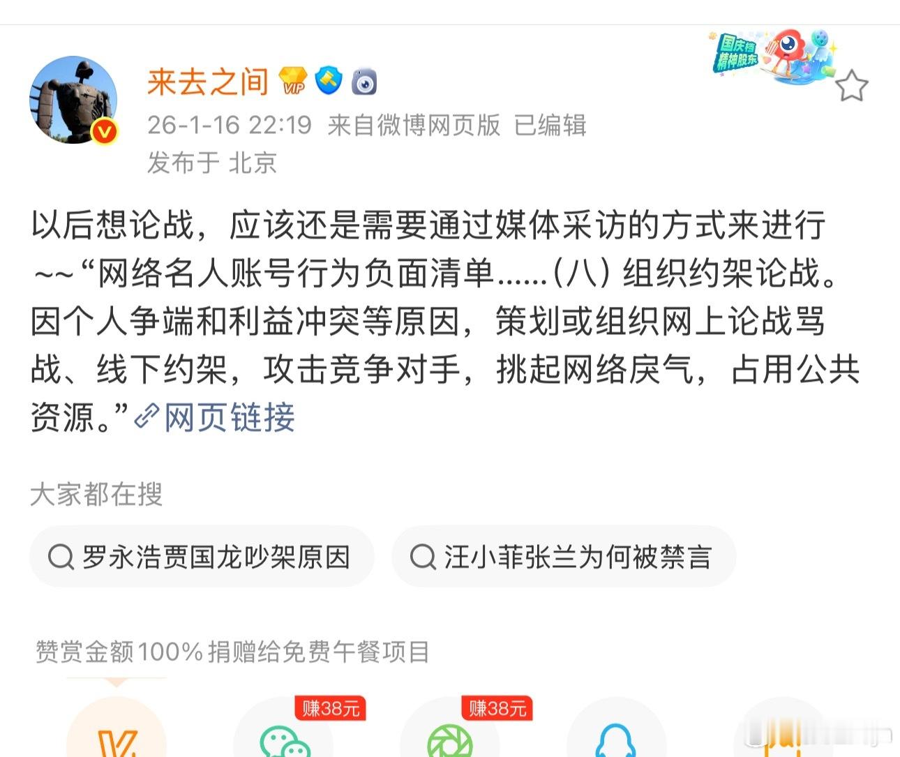 贾国龙罗永浩微博被禁言哈哈,估计来总也不想这样,泼天的流量来了不让接