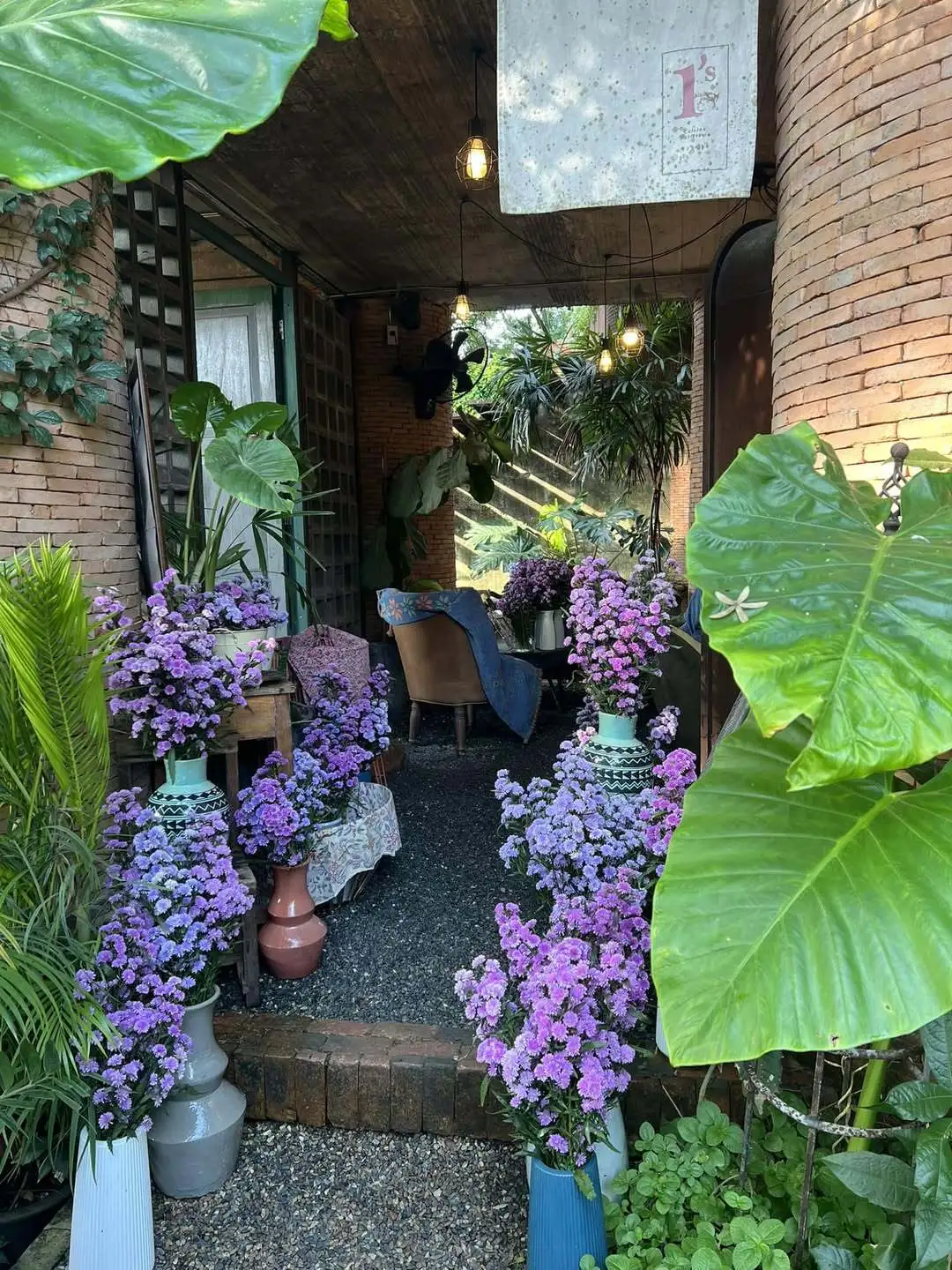 整个院子都种满了以紫色💜为主的鲜花,其中绣球最多,餐厅的装饰也是极繁主义的宫廷风