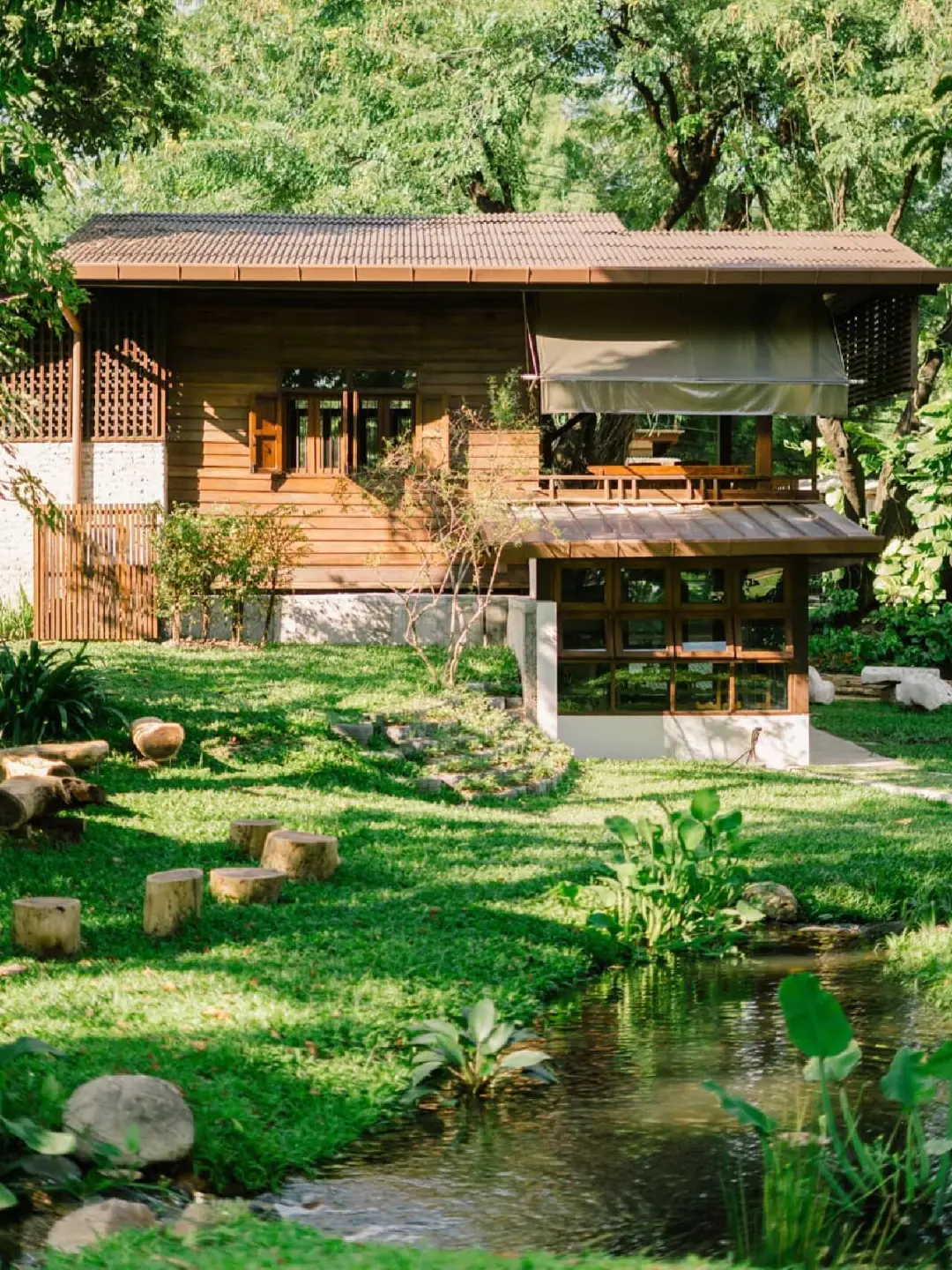 “清迈爱丽丝梦游仙境咖啡馆”,原始森林,绿野仙踪一般的庭院环境。碧绿碧绿的小溪里是五颜六色漂亮的鲤鱼