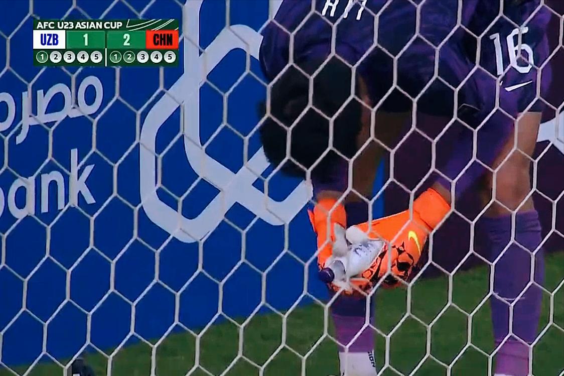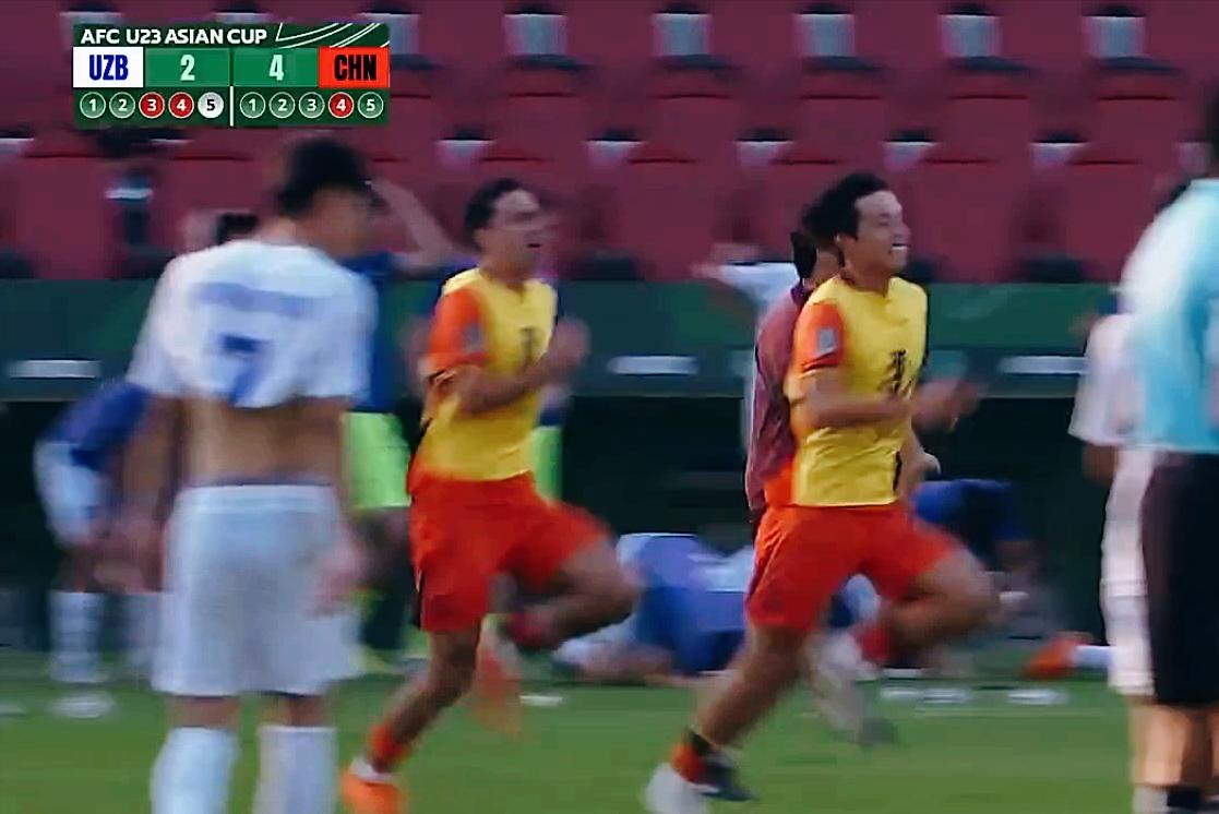 120分钟结束 李昊露出自信的微笑 我就知道中国队点球决胜的机会来了 只要拖到点球决胜,中国队就有淘汰对手,晋级半决赛的机会。是不是很多人跟我一样,有这样的预判。为什么?因为我们有李昊。 点球罚到第3轮,李昊在球网后面拿起矿泉水瓶,看着什么,难道是上面有扑球秘诀? 结果,卡里莫夫在李昊的压力之下,一脚踢飞。只可惜杨皓宇踢得速度不够,被补住。 可李昊迅速用一次准确地侧扑,稳稳地扑到了阿卜杜拉耶夫踢出的点球,创造了中国队只要最后罚中,就能晋级的良机。 王博豪,这支中国队唯一的留洋球员,担任最后一位点球手。果然不一样,一蹴而就。 这里要特别强调,队长胡荷韬在挑边时,选择了先踢点球而不是球门。只要第一罚刘浩钒能踢进,中国队将占住先机。 其实,第92+2分钟,王钰栋在对方禁区被从身后压倒,但这位巴林裁判未予理会,我们在常规时间就可能解决战斗。 中国U23男足挺进半决赛,创造了中国男足在这项赛事中的历史,为复兴中的中国足球新年开了一个好头,可喜可贺! 淘汰连续4届U23亚洲杯四强的乌兹别克队,战胜力压韩国队的这一支近年来进步最快的中亚强队,中国队按计划制服了对手。 半决赛,我们将迎战4战全胜,本届赛事最大的黑马越南队。中国队仍然有机会,甚至能在常规时间里战而胜之。王钰栋将是那一场比赛的赢球功臣。 到时谁才是真正的黑马还难说,中国队是唯一以第四档晋级决赛圈的球队。 中国足球中国男足李昊点球制胜 U23国足首进亚洲杯4强