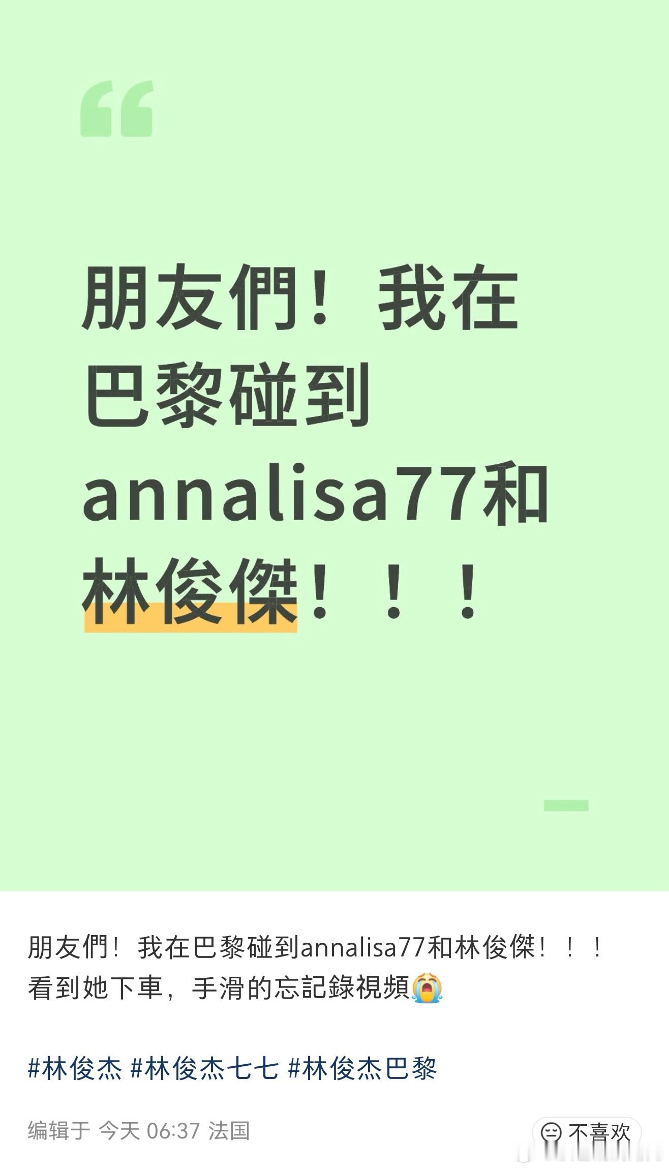 巴黎偶遇林俊杰七七巴黎偶遇林俊杰与女友七七 有网友在巴黎偶遇林俊杰与女友七七了,
