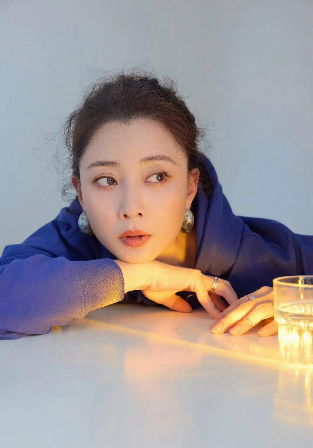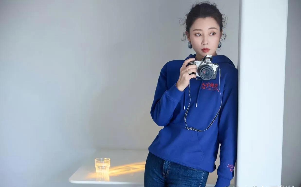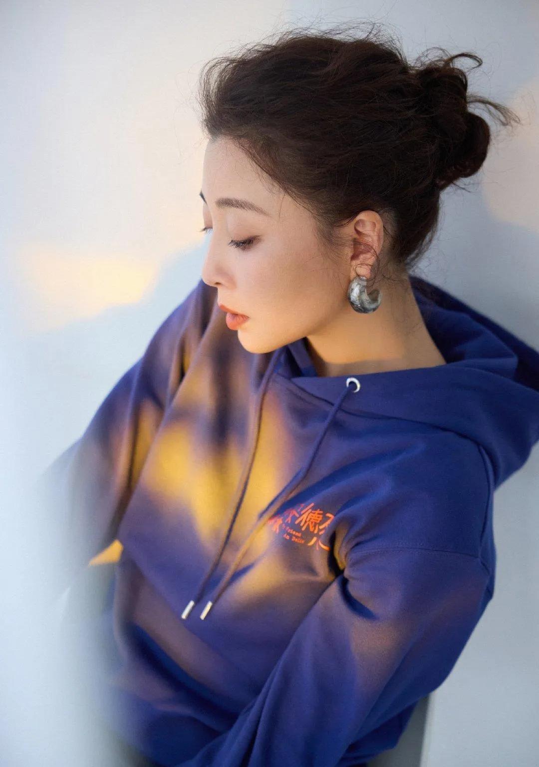 殷桃的状态我太喜欢了!宝蓝卫衣+微喇牛仔裤,松弛温柔又显气质,这才是冻龄女神的正确打开方式~殷桃