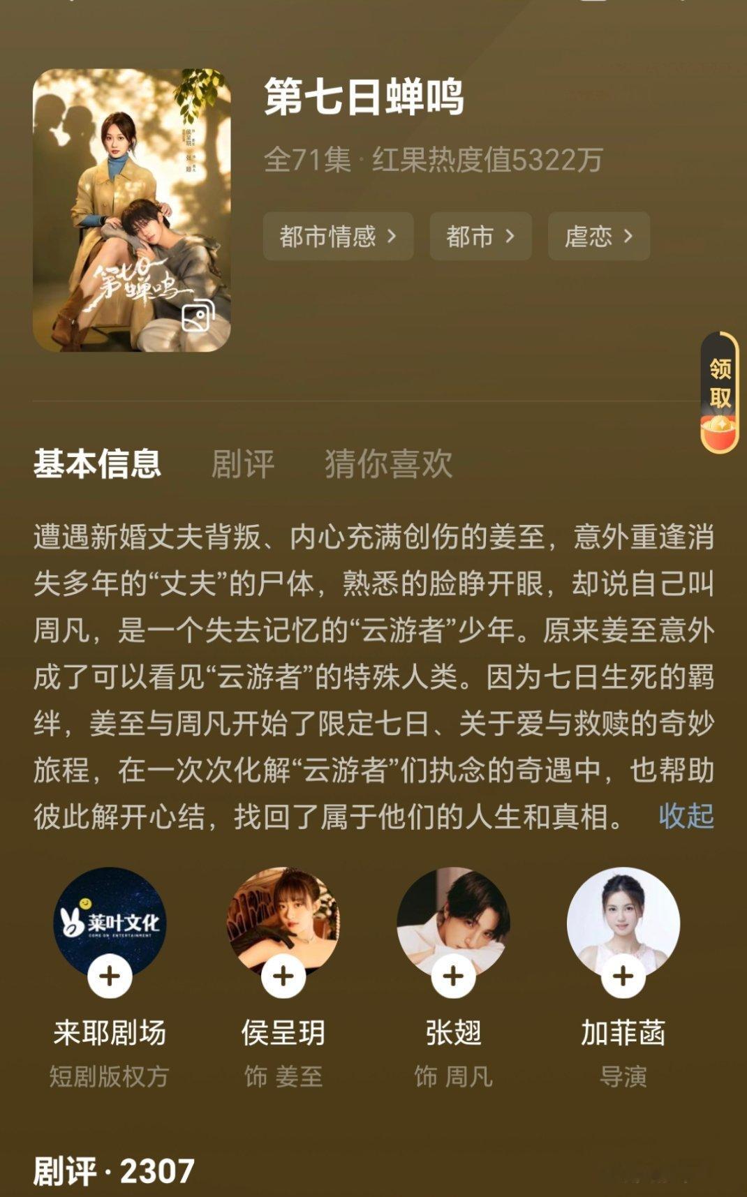 短剧:第七日蝉鸣看这剧突然意识到原来短国也不能拍鬼🤣剧情就是女主为了弄明白跟自己丈夫长着同一张脸的云游者(鬼)到底是谁找回记忆,帮其他五个云游者完成愿望,类灵魂摆渡的单元剧。每个故事单元都很简单,但整体拍得还挺动人的。有一part是女主妈妈跟外公的亲情线,18岁刚上大学就怀孕超级离谱啊,真心爱孩子的不可能接受!!!既然后面生活幸福怎么可能那么多年不回家,只有生活特别不幸才没脸回去认错吧🤣女主妈妈是戴娇倩演的,看到她意识到原来以前很多熟悉的演员都已经很久没演过戏了。最后故事线收束,其实并不是女主帮谁完成愿望,而是目睹一个个未了心愿实现她要学着放下过去活在当下。张翅我看他剧好像演得角色都差不多有点疯的角色,不过这部跟侯呈玥还挺搭的,有小嗑到