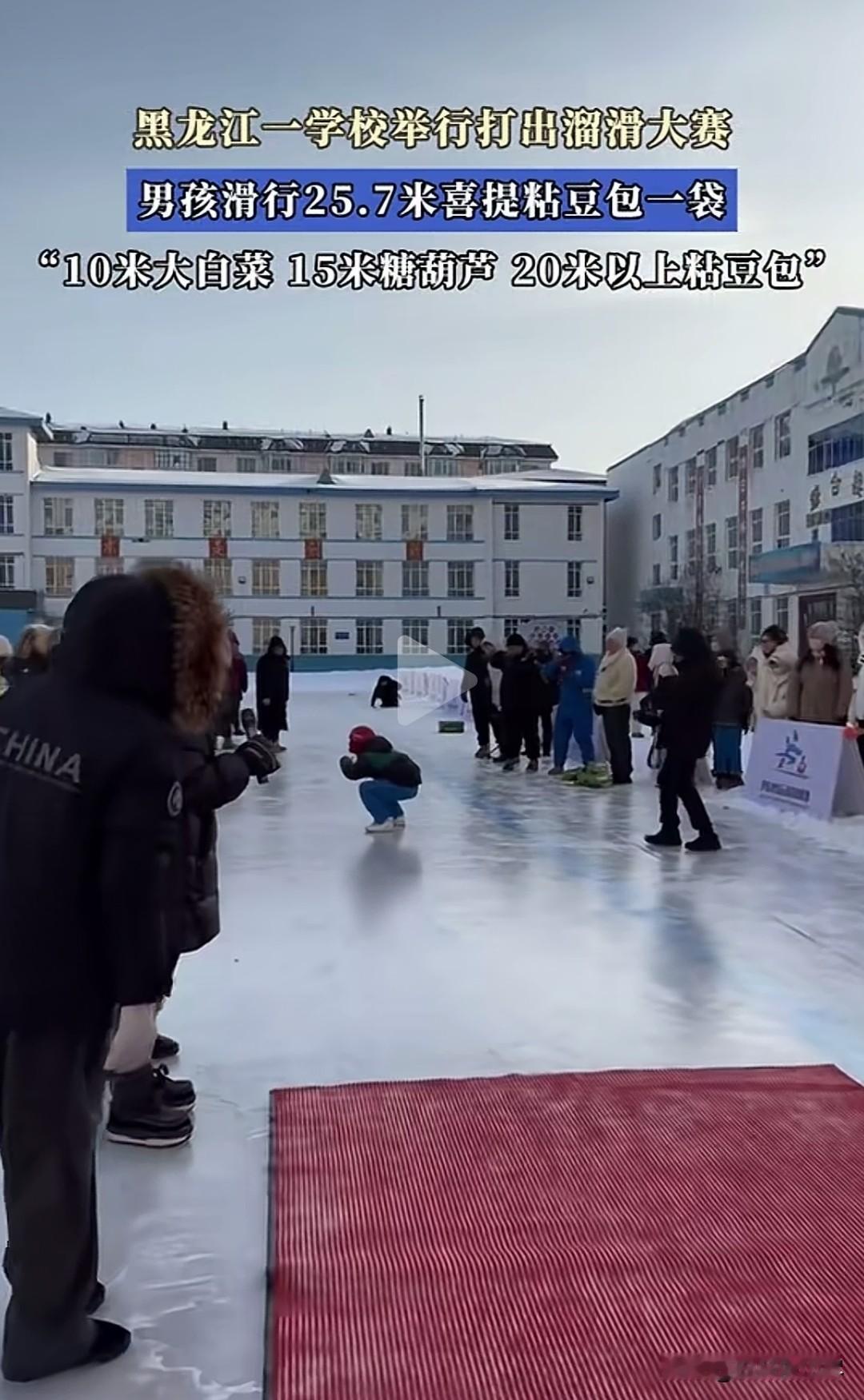 “太有意思了!”黑龙江一学校举行打出溜滑大赛,男孩滑行25.7米喜提粘豆包一袋,