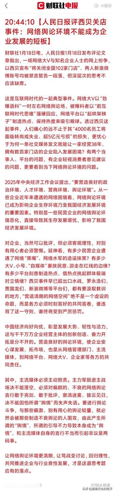 官方的调子已经定下了! 人民日报发文对罗永浩、贾国龙和平台三方各打了一板子,但重点还是强调不能让舆论影响企业的的正常发展,看来这场预制菜之争应该结束了。 针对人民日报的评论,个人有3点看法! 第一、网红批评并不等于舆论霸凌,消费者合理质疑是进行舆论监督,以批评者的流量大小,否定批评合理性,实则是回避经营问题。 第二、支持实业不等于纵容问题,就业价值不能抵消经营争议,“保就业”不应成为规避责任的挡箭牌。 第三、负面评论不等于被裹挟,网友反馈问题肯定是基于自身体验,否定评论动机暴露企业回应缺乏说服力。 大家怎么看呢?