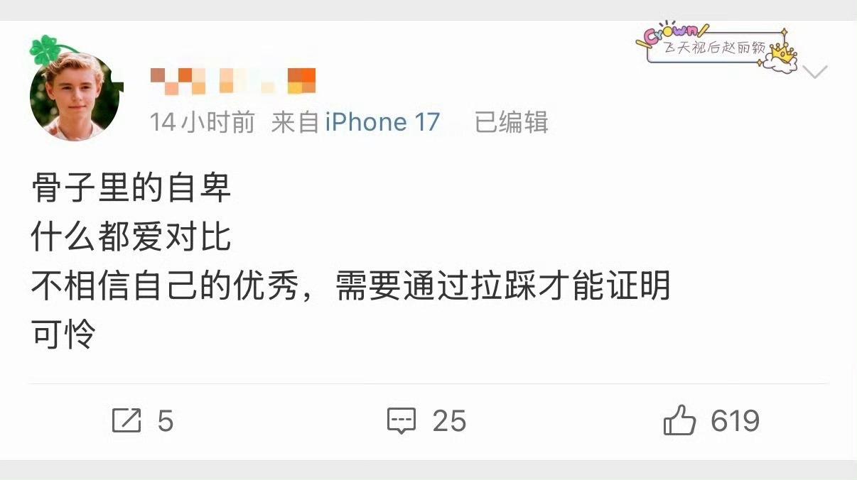 骨子里的自卑什么都想要和偶像对比因为自己什么都比不过,需要通过拉踩抹黑才能证明自己的存在可怜