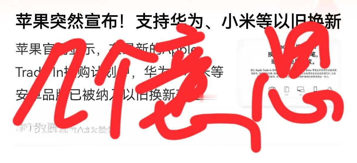 苹果搞什么飞机?以旧换新支持华为,小米了,这是什么套路?几个意思? 为了提高销售还是为了收集那些旧手机?一向清高的苹果怎么了?为了销量降低身段打营销战了?为提高市场份额开始不择手段了? 还是为了打那些旧手机的主意,里面有数据呀,苹果可是有这方面前科的! 爱咋咋地,反正我只买华为。