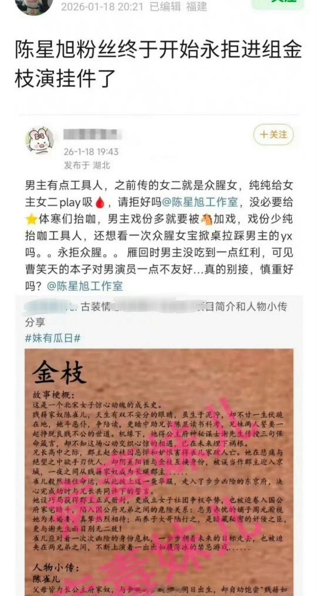 陈星旭粉丝对于《金枝》这个剧本非常的抗拒啊,说不愿意陈星旭去当一个挂件男主,直接永拒了,你觉得有这个必要吗?