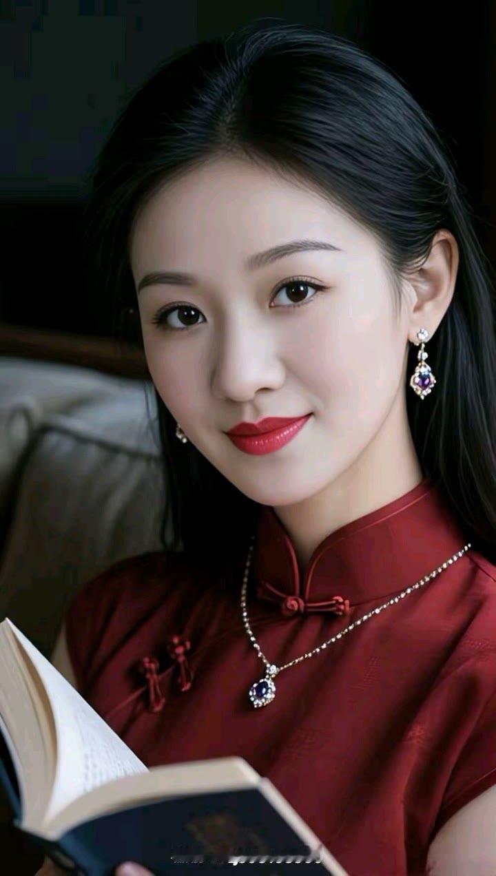 复古旗袍少女,优雅坐于藤椅,红唇与粉色旗袍相映成趣。