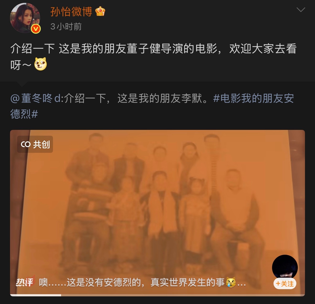 董子健回复孙怡孙怡转发董子健微博为新片宣传