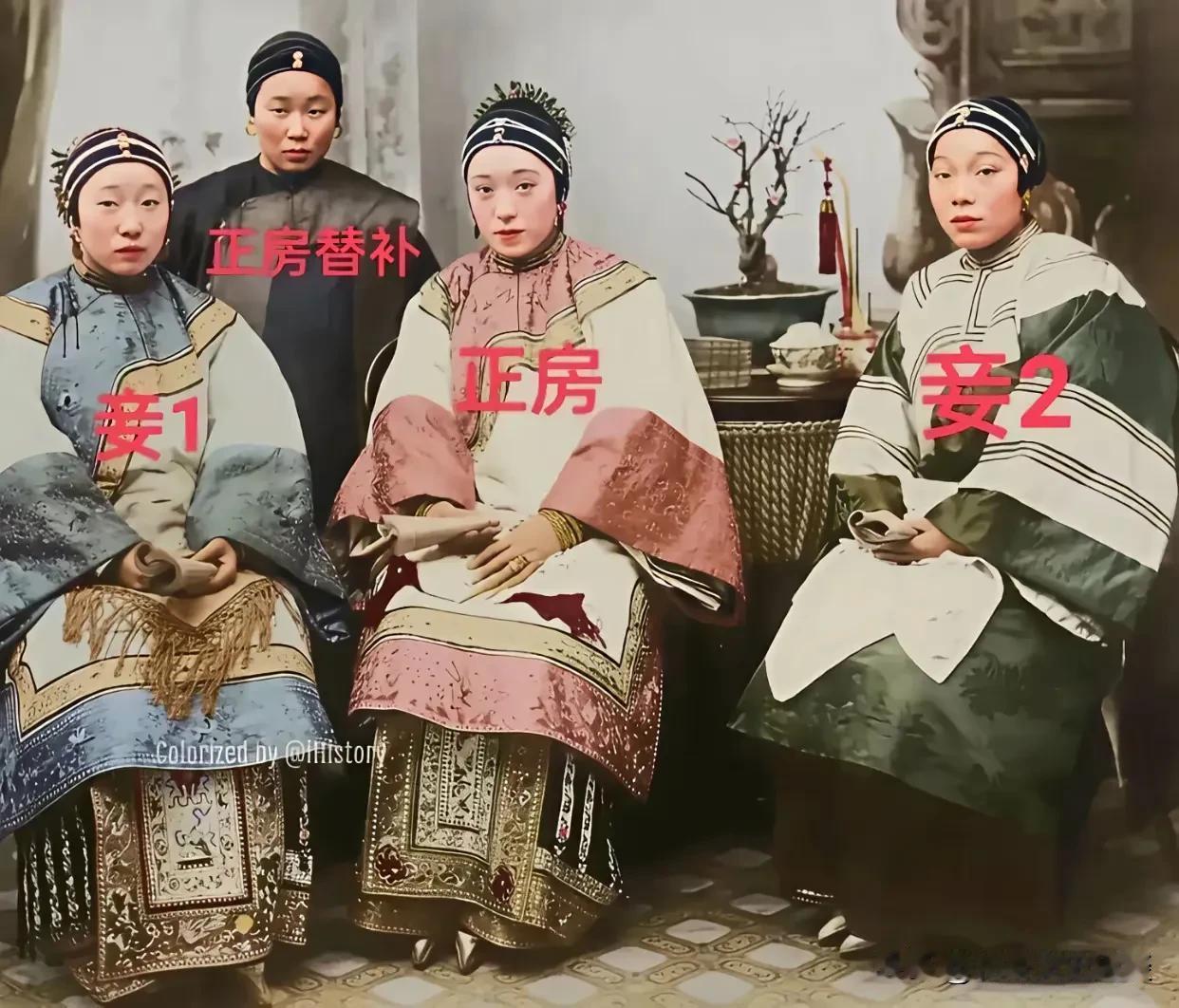 都说清朝的服饰是最丑的你怎哦看?看看这是一个富人的4个老婆,一个正妻,两个小妾,