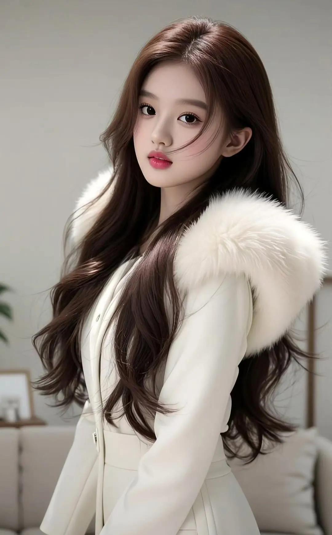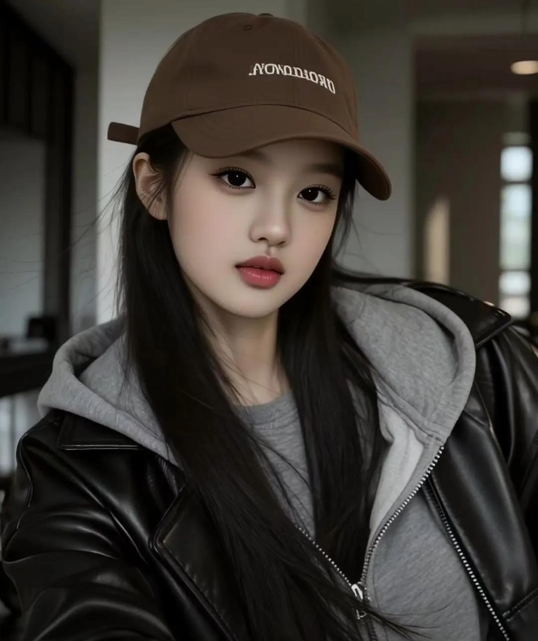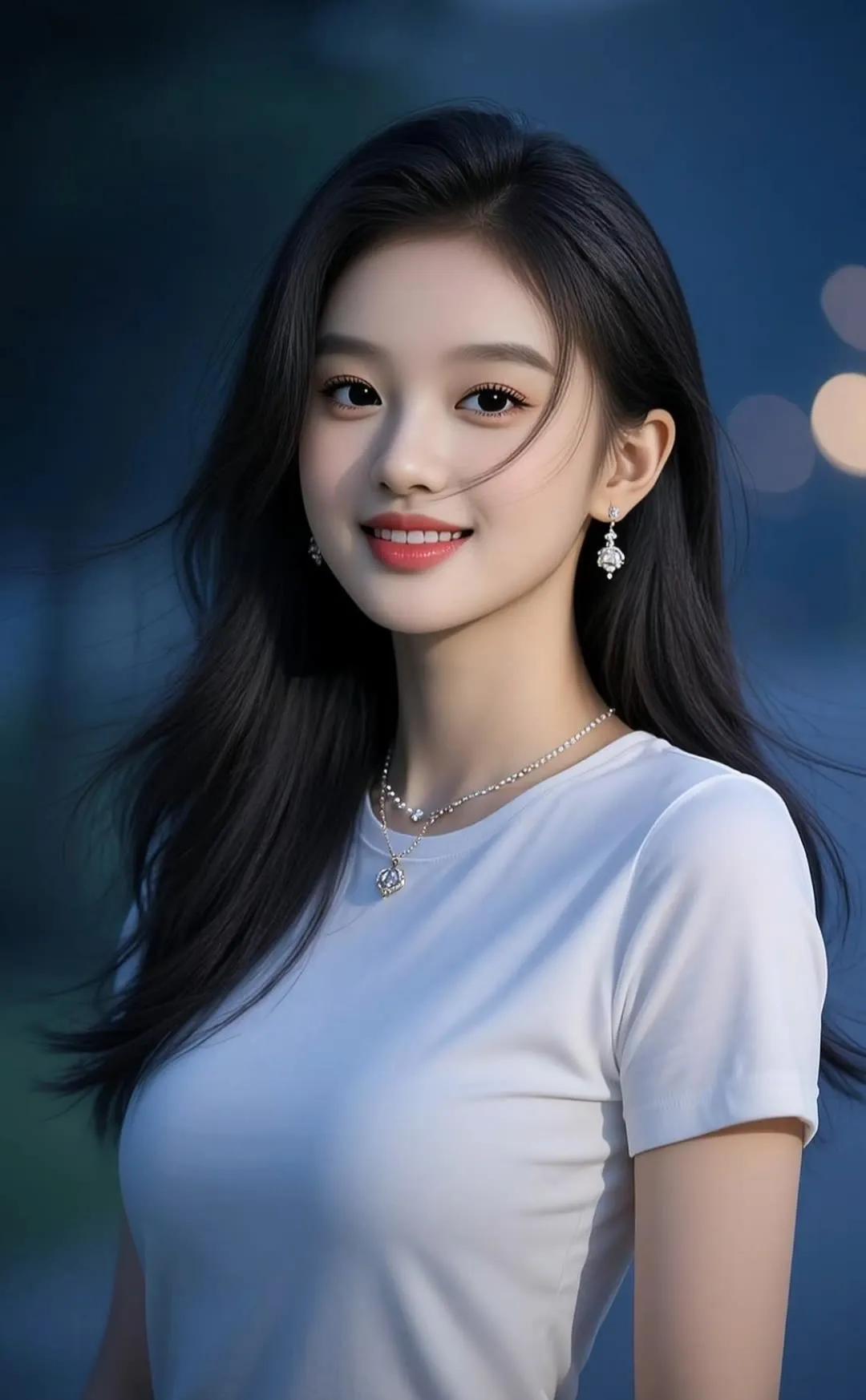 甜美少女,黑发红唇,简约优雅,气质出众。