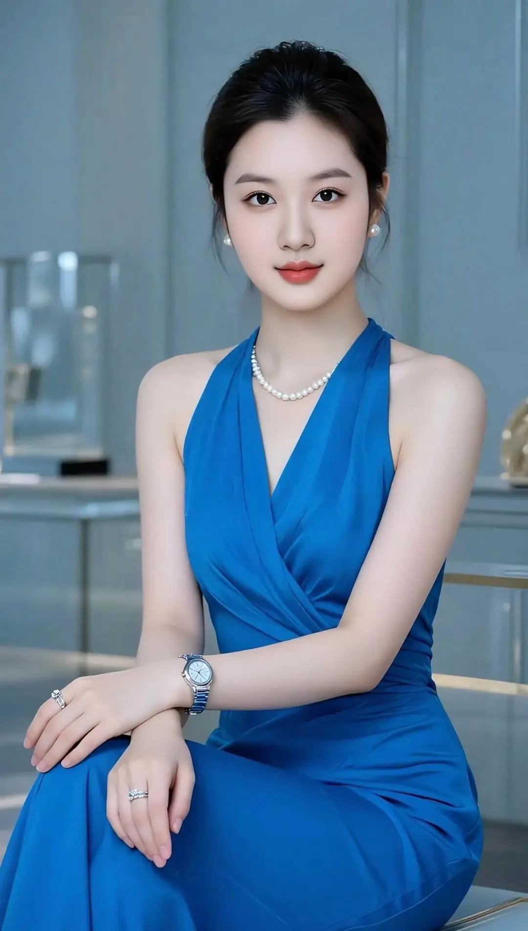 优雅蓝裙,闪耀珠宝,红唇诱惑,尽显女性魅力!💄✨👗