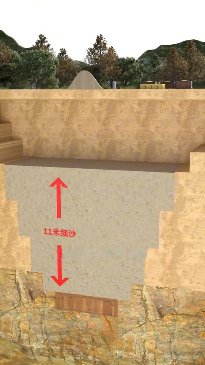 如果给盗墓贼一把洛阳铲,其便能将好兄弟的坟墓挖出一个盗洞,随后将奇珍异宝洗劫一空。 为了防住盗墓贼的光顾,于是你将坟墓挖深至地下二十米,墓坑采用大量夯土压实,筑成一道坚固的物理屏障。但是遇到执着的盗墓贼,依旧能挖穿夯土打破屏障。于是你采用经过处理的纯净细沙,将深坑填充至11米,上部再夯筑7米的夯土。当盗墓贼挖至细沙层时,由于纯净细沙的超强流动性,流沙便能很快将盗墓贼掩埋,让其有来无回。 但是道高一尺魔高一丈,其在坟墓旁边挖出盗洞,遇到流沙层时,其采用大量木板,支起稳定的三角形结构,这样便能防止被流沙掩埋。 那么怎样才能阻止盗墓贼?这也难不倒聪明的你。于是你在流沙之中掺入大量棱角分明的巨石,当扰动流沙时,下落的巨石便可砸坏木板,阻止盗墓贼前行,形成致命打击。 同时在棺椁底部放置卧底石,中部设置拦腰石,顶部堆砌贴顶石,用于全方位保护棺椁。并在上方墓道口位置,再放置两具假棺,摆上零散的珍宝,假棺下面再堆砌石块,造成墓葬到底的假象。当盗墓贼发现是座空墓时,也只能悻悻而归。殊不知大量的珍宝正藏于正下方的棺椁之中。 那么恭喜你建造了著名的郭庄楚墓,其规模宏大的积石积沙防盗结构,使其在两千年历史长河中抵御了数十次盗掘,堪称我国古墓物理防盗设计的巅峰之作。