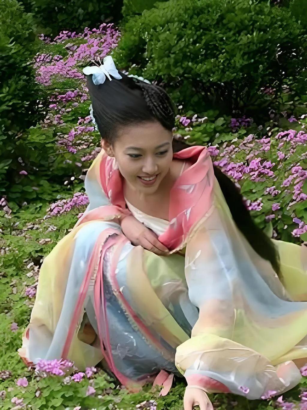 温柔古风少女,浅笑如春,轻纱拂面,古典韵味十足。