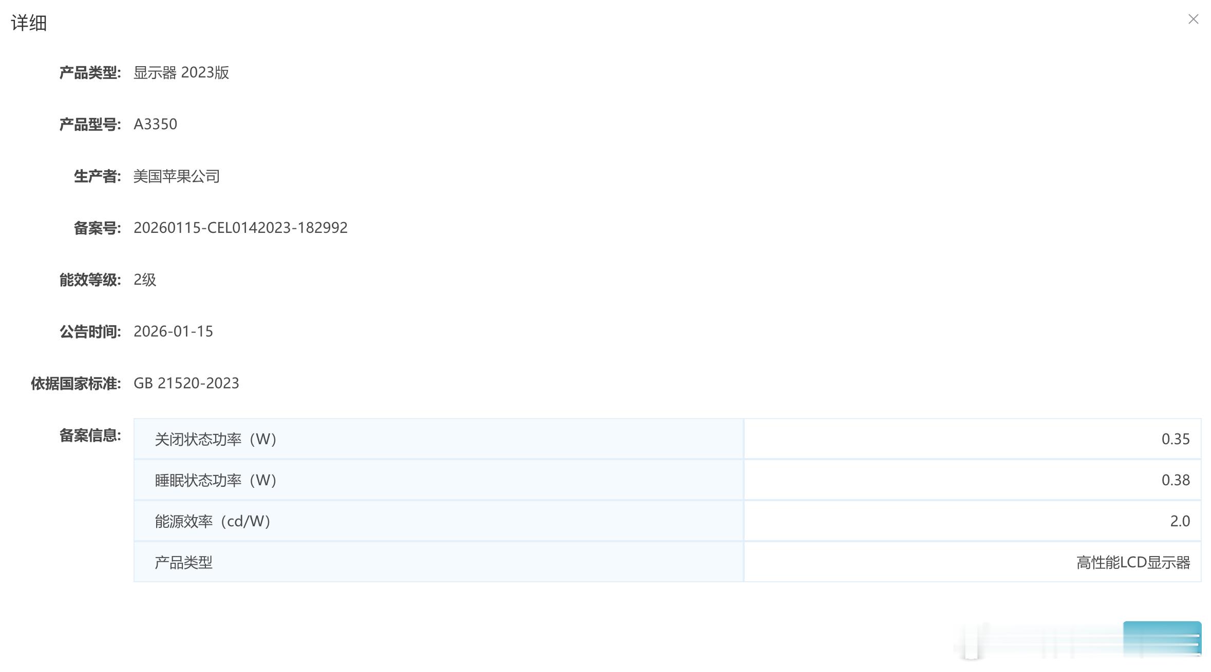 Apple 重磅消息,苹果的Studio Display 第二代马上来了!「中国能效网」公布了美国苹果公司的备案信息,显示一款产品型号为A3350的显示器产品,而第一代的Studio Display型号为A2615。登录苹果官网能看到很多城市的苹果店已经没有现货了,确实已经4年没有更新了这次Mini LED面板、高刷屏、更强大的芯片都会来,估计发布时间2个月内(第一代是1月14日备案,3月9日发布)。