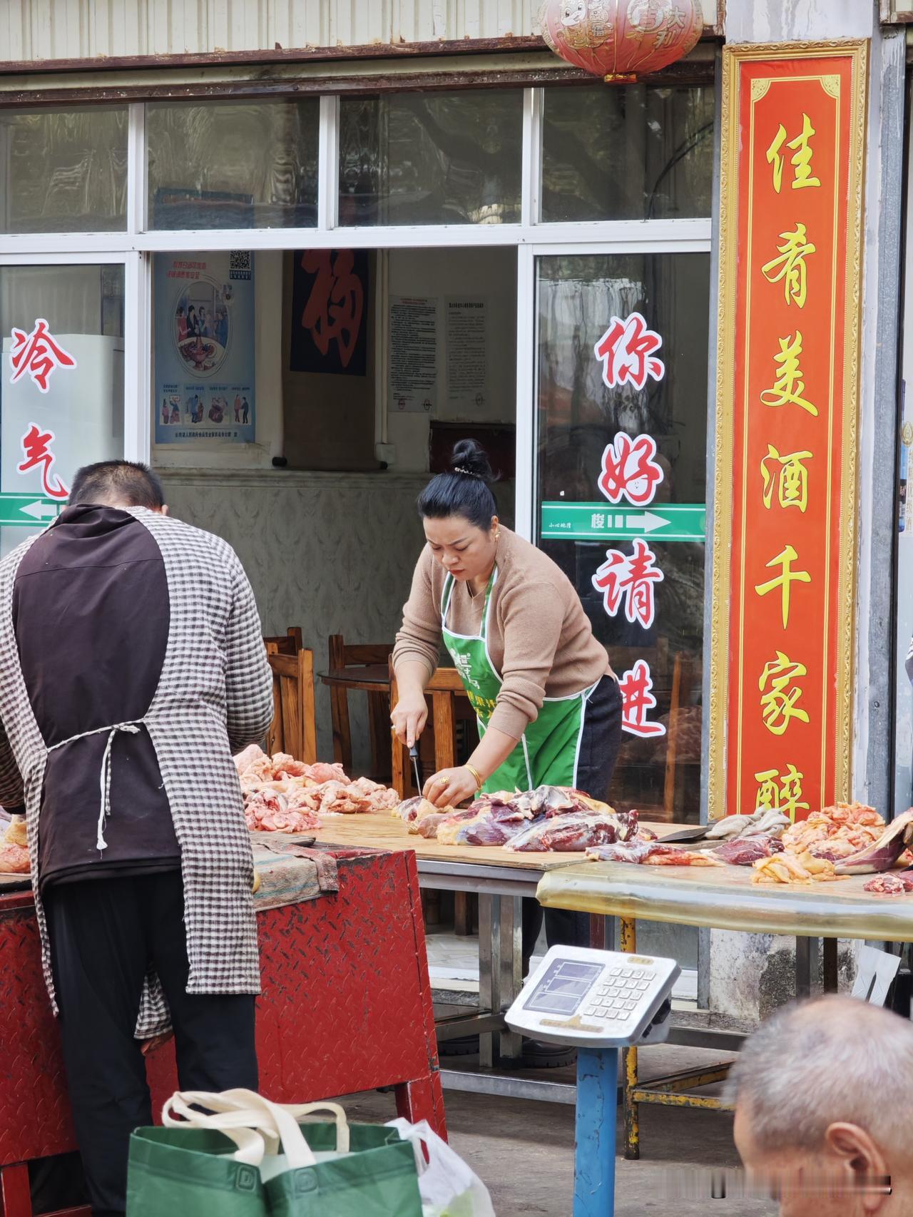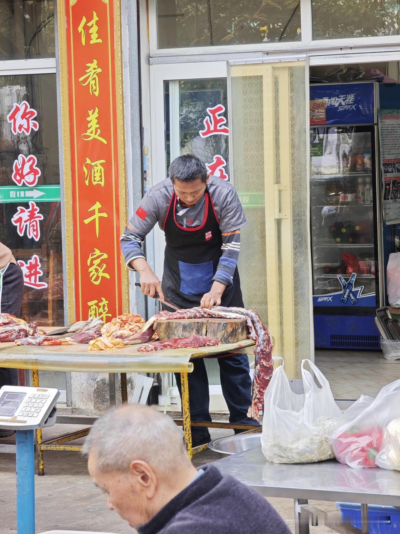 晒图笔记大赛这家餐馆的食材应该不差哦,路过看到在店门口现场分解牛肉,可想这家店做