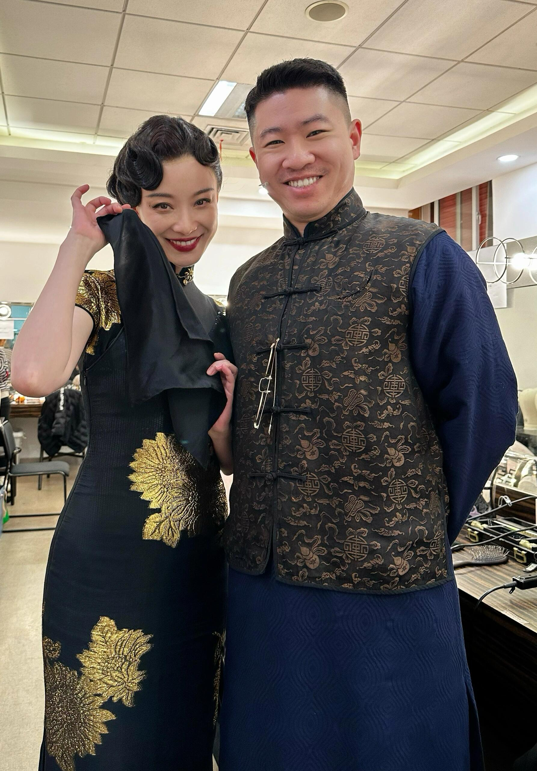 张天爱跟素人合影,胯真的好宽,大宅院似的