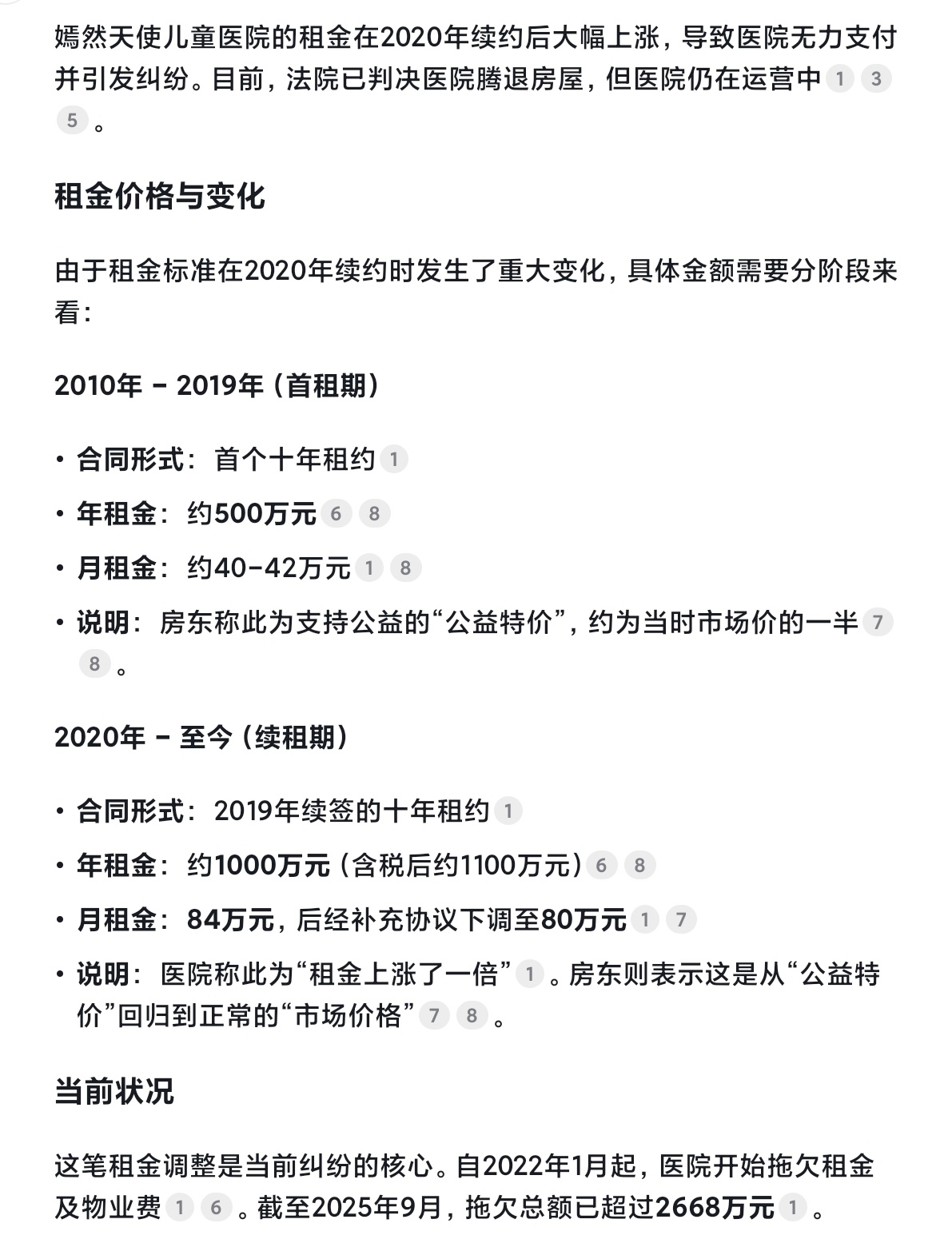 嫣然儿童医院回应企业无偿提供场地这个医院5000平米,山东东营有个2500平米的免费用5年,江苏昆山的2500平也可以免费用,正好够现在的规模,就是搬迁没那么容易,不是光设备搬走就行,流程复杂,医生以及家人定居北京不好搬。现在租金是10年1000万,如果搬走还是能省下不少,用于手术的费用,估计能最少治疗好几百起。