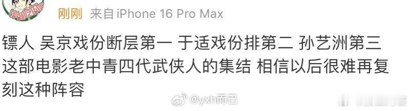 镖人戏份🍉,吴京断层第一 ,于适戏份第二,孙艺洲戏份第三,而且我觉得于适这个造型也挺不错的