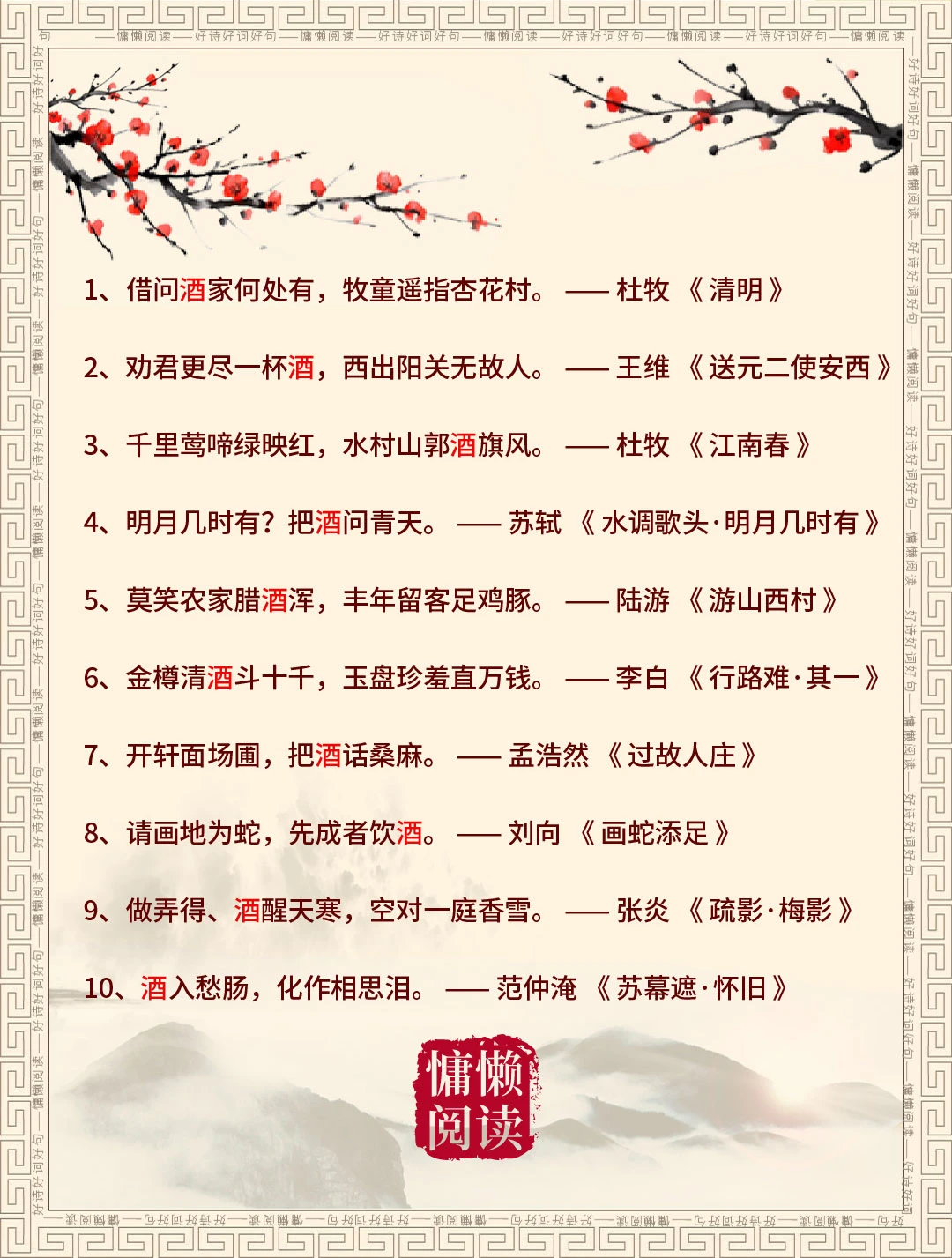 今日飞花令:酒字入诗,请君接令
