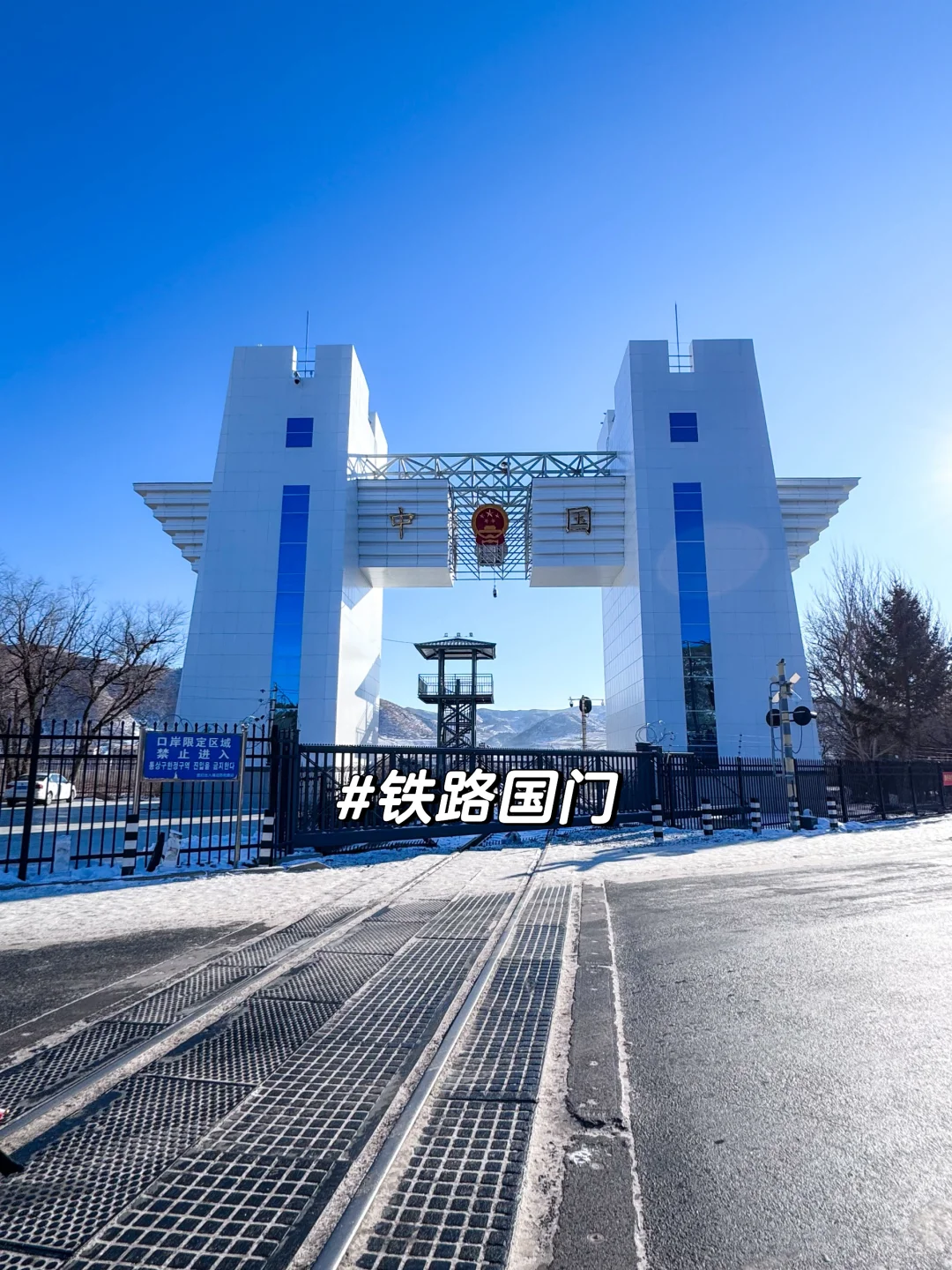 ▫️这是一个不对外开放的铁路国门,可以在门口拍照,映衬着国门下面的铁路很出片~