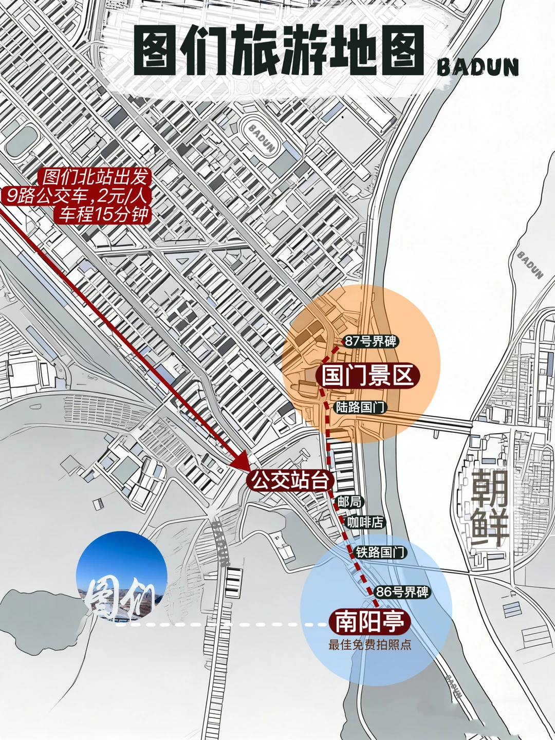🚌图们北出站往前50米,换乘9路公交车