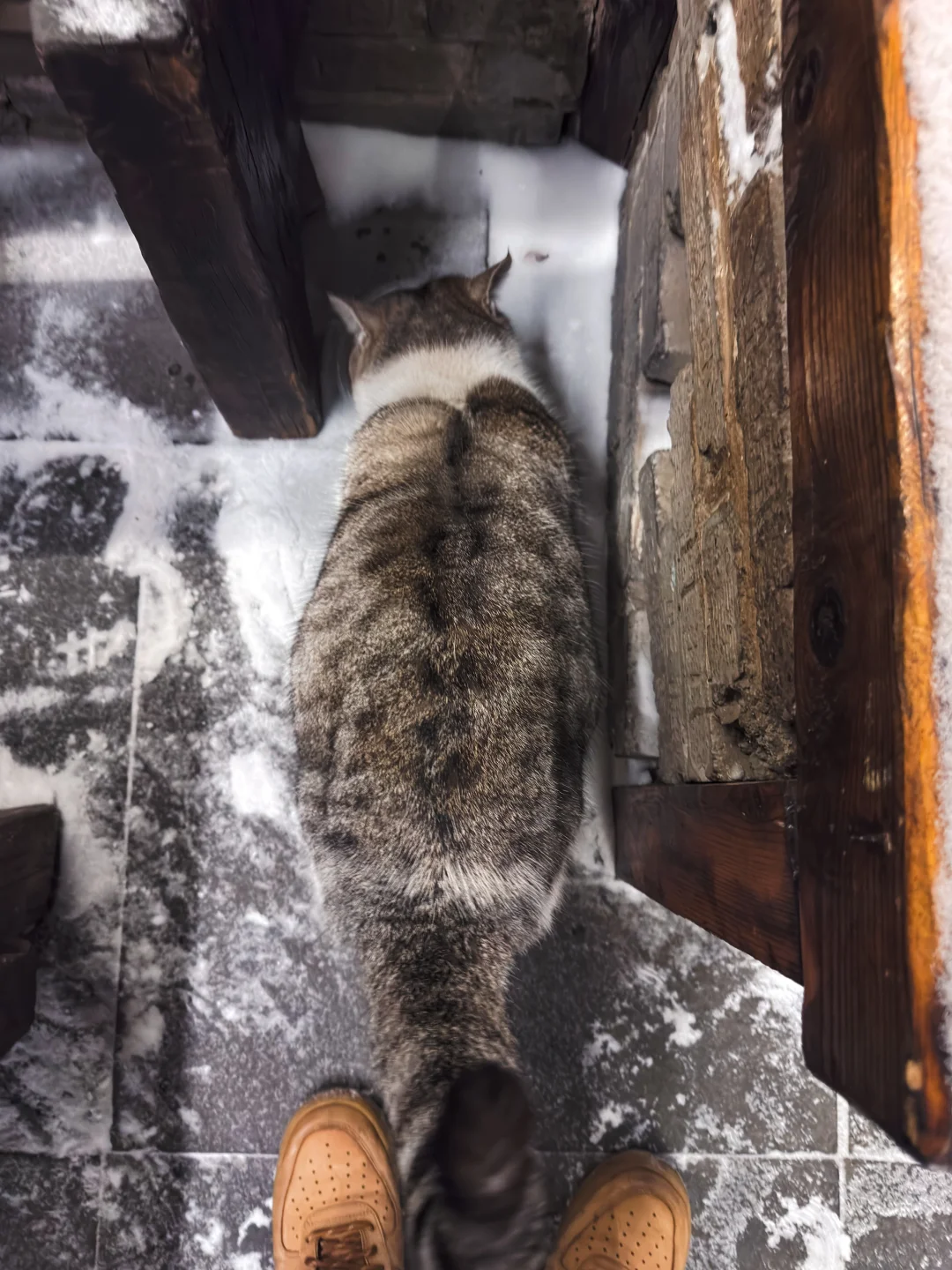 在某个下过雪的傍晚去吉林机器制造局旧址逛,进门就看到一只超规的简州猫,在雪地里边走边叫,那个楚楚可怜的声音啊,一下子把同情指数拉满~~