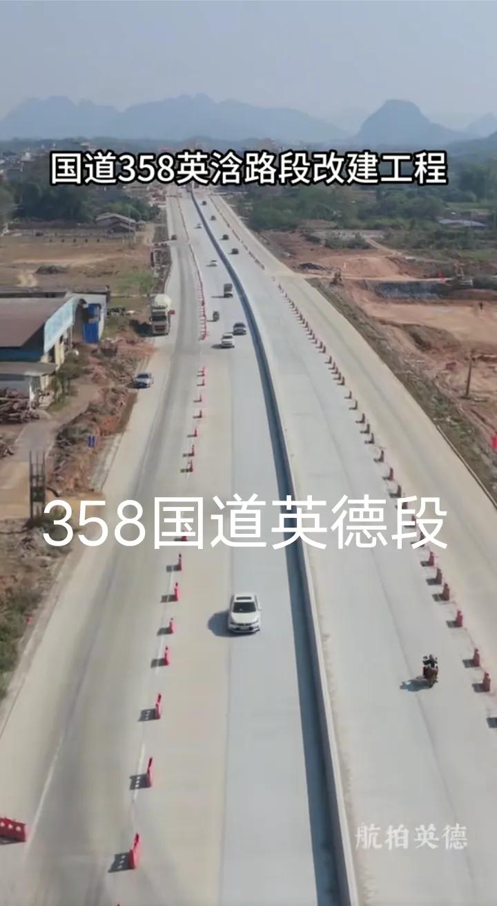 即将通车,358国道清远英德至大湾段改扩建工程(一级公路)春节前有望部分路段建成通车,广州和清远等地开车来往连州和阳山还有湖南永州和郴州等地将更加便捷,春节期间S1广连高速连江口至西牛路段车流量大拥堵严重的时候可以起到分流的作用,沿途的石灰铺和浛洸还有大湾等乡镇出行也会更加方便安全,358国道英德至大湾段改扩建工程全长约53公里,双向六车道(部分双向四车道),设计时速80公里每小时,目前混凝土路面和中间隔离带基本浇筑完成,即将开始施划标线和安装路牌等工作,信息以官方和实际为准。