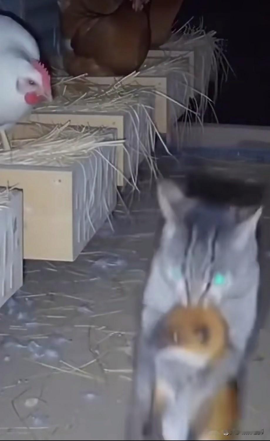 刚看到一个视频,一只猫埋伏在鸡窝里,晚上一只黄鼠狼跑进鸡窝里袭击鸡窝里的的鸡,被袭击的鸡跳到一边,埋伏在鸡窝里的猫一迅雷不及掩耳之势跳出来抓住黄鼠狼,原来动物也玩战术哈。
