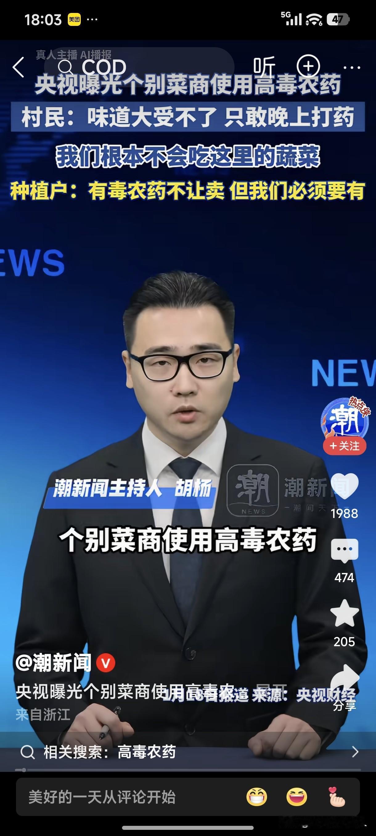 央视曝光个别菜商使用高毒农药! 菜地附近村民:味道大受不了,只敢晚上打药,我们根本不会吃这里的蔬菜! 菜地种植户:有毒农药不让卖,但我们必须要有! 一边是村民说“不会吃这里的蔬菜”,一边是种植户说“有毒农药,必须要有”! “黑了心”的种植户为了挣钱不管别人死活,说话还那么理直气壮,实在是太可恶、太坏了!
