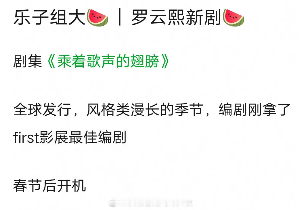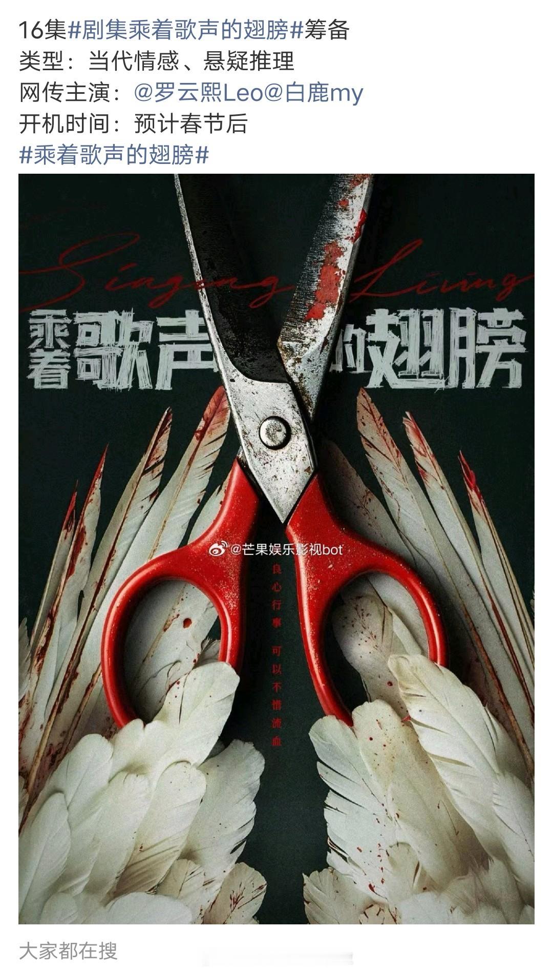 网传罗云熙白鹿三搭《乘着歌声的翅膀》,这个瓜最开始只爆了男主罗云熙,编剧刚拿下first影展最佳编剧,悬疑推理,风格类漫长的季节,春节后开机。这是剥茧的播剧红利吧?感觉白鹿不会接