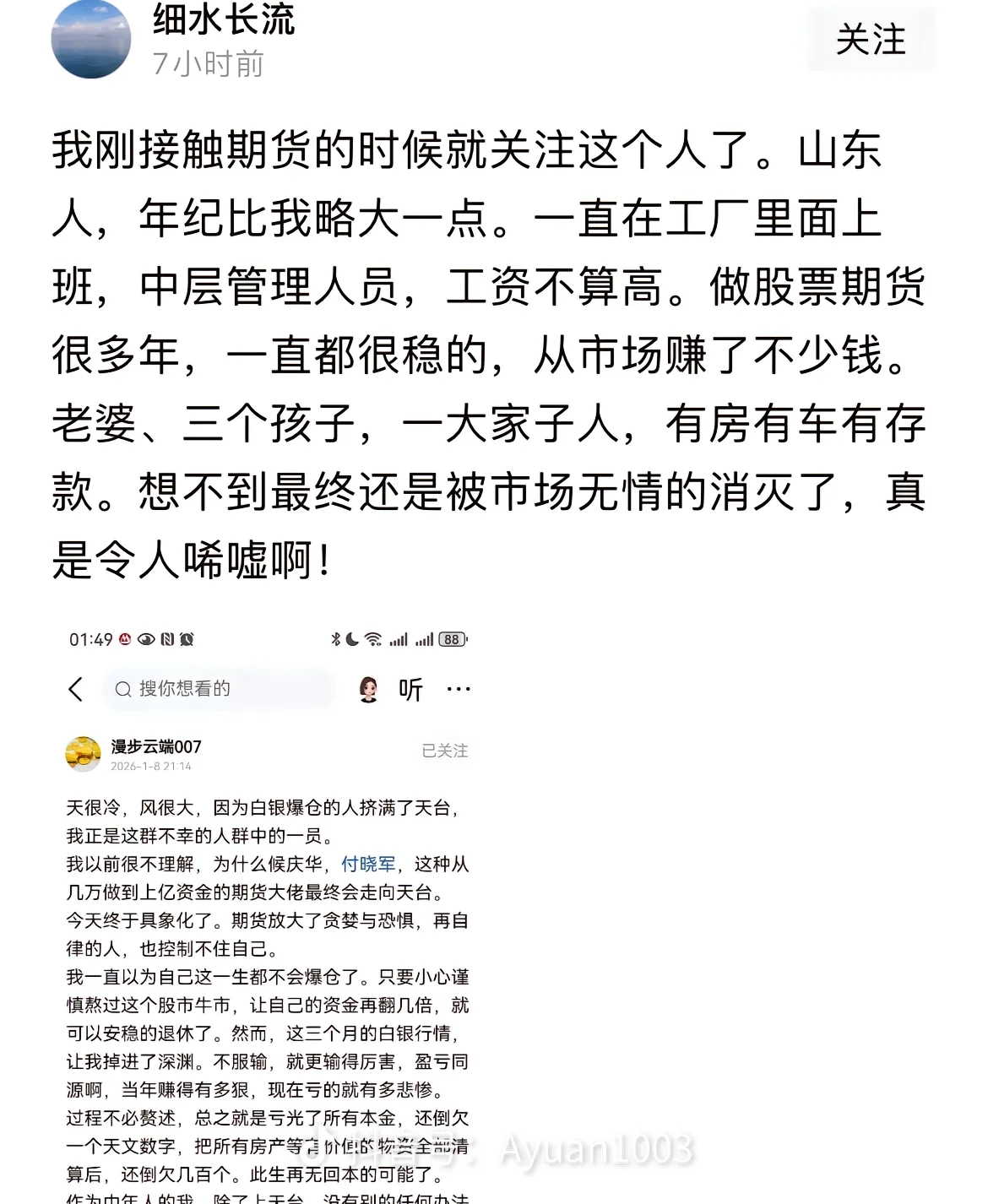 我爸去年不知听了谁的忽悠,稀里糊涂买了五万块的农业银行股票。今天突然把手机怼到我