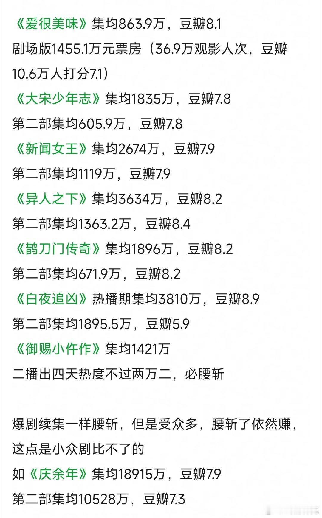 网友总结:小众口碑剧续集播放量,难逃腰斩魔咒