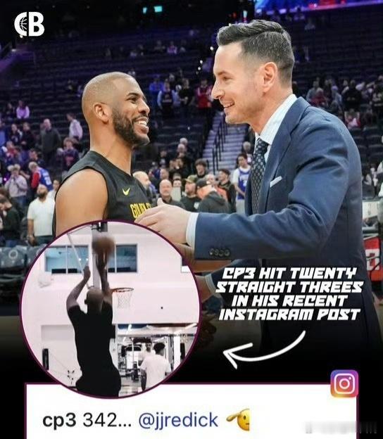 爆料!保罗要来湖人了?社媒向雷迪克投掷求职信!拜拜了,快船!2026年1月18日,NBA老将克里斯炮Instagram上发布了一条引人瞩目的动态。视频中,他在左侧底角连续命中20记三分球,状态神勇。然而,比百分百命中率更引人遐想的是配文:仅有一个数字“342”,加上一个敬礼表情,并特意