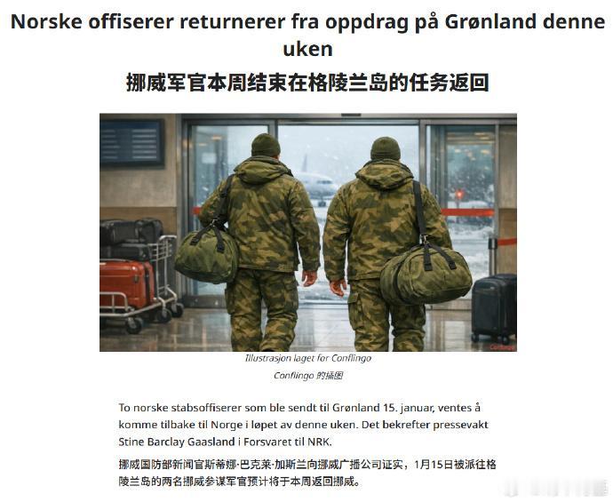 据媒体报道,继德国下令撤走全部派往格陵兰岛的士兵后,不久前挪威也宣布派遣至格陵兰岛的两名军官也要选择离开。 对此有网友推测美军对格陵兰岛的占领计划最早应该会在1月底前实施。 来源:conflingo