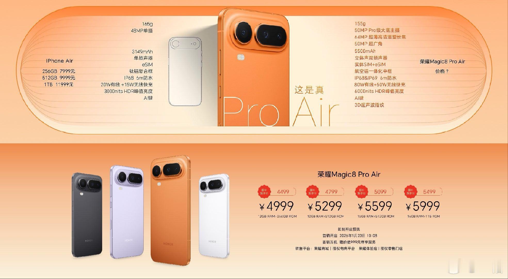 荣耀Magic8 Pro Air 价格来了,4999元起荣耀发布会Air手机界来了个真Pro