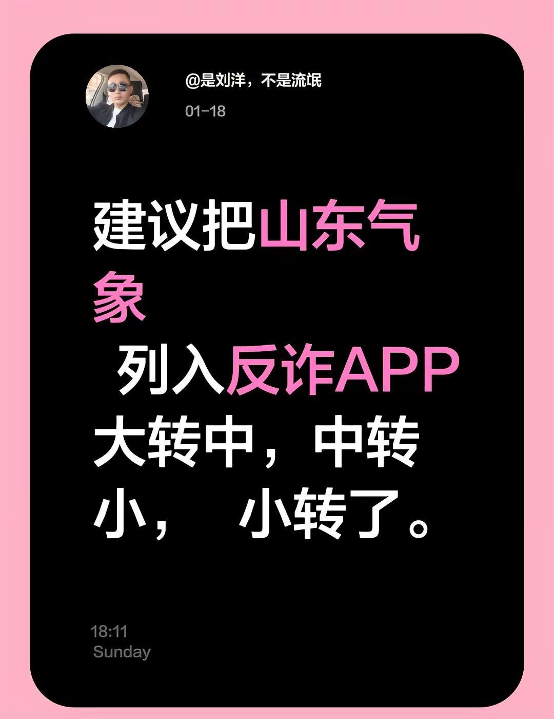 建议把山东气象 列入反诈APP大转中,中转小, 小转了。